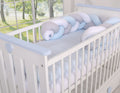 En vacker, ultramjuk vävd spjälskyddsskydd tillverkad av 100 % bomull. Detta skydd fästs enkelt på spjälsängsstängerna och skyddar ditt barns händer och fötter från att klämmas. Det förhindrar också att ditt barns huvud och kropp stöter mot spjälsängens väggar.