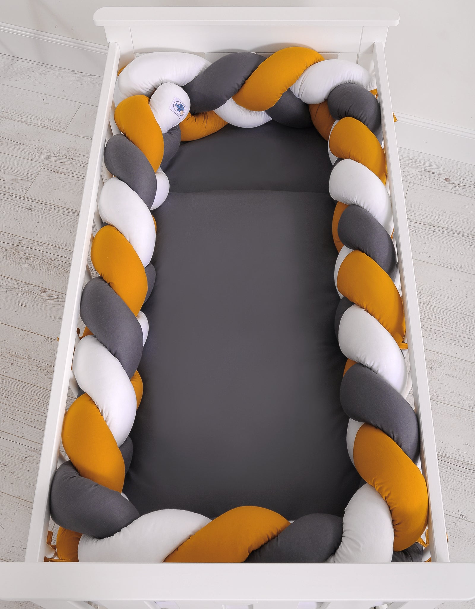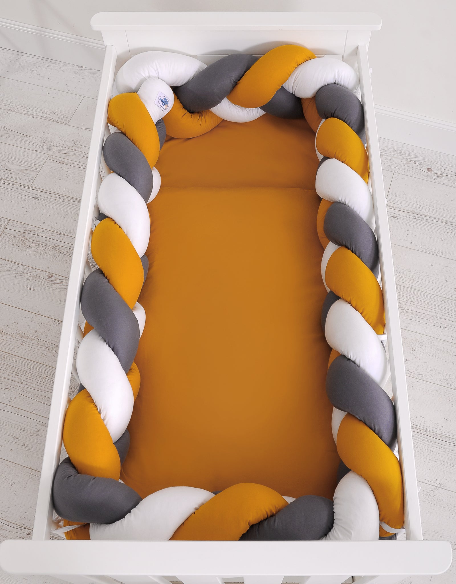 Flätad spjälsängsskydd XXL – spjälsängsskydd – andningsbart och säkert – 100 % bomull