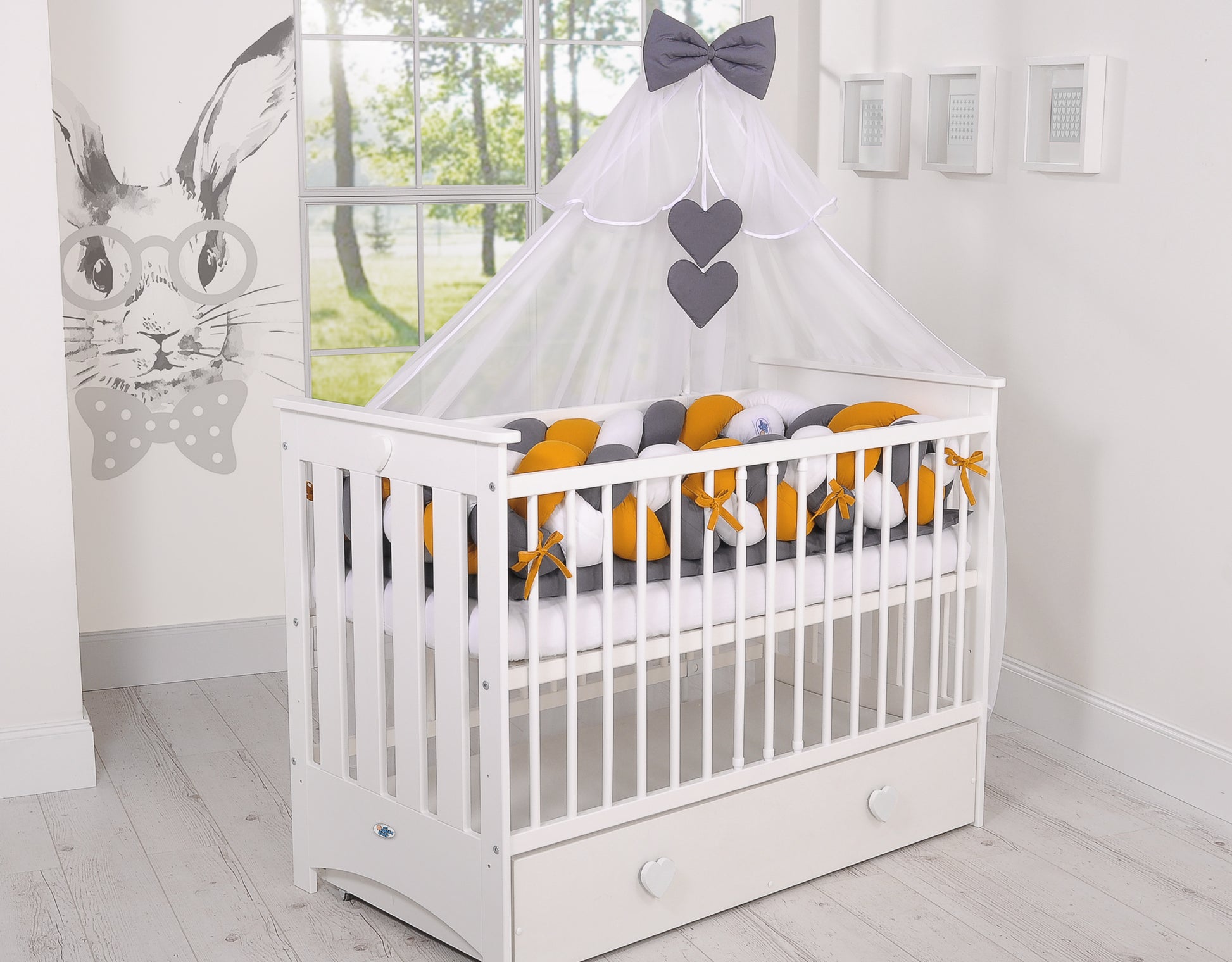 En vacker, extra mjuk vävd spjälskyddsskydd, tillverkad av 100 % bomull. Detta skyddar ditt barns händer och fötter från att klämmas mellan spjälsängens spjälskydd och förhindrar även att huvud och kropp stöter mot spjälsängens väggar.
