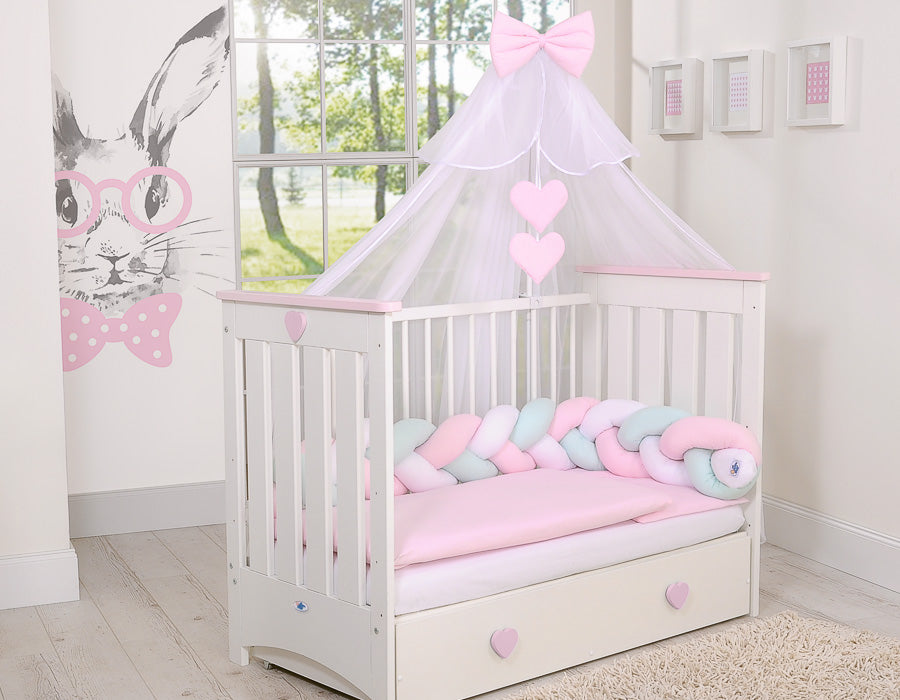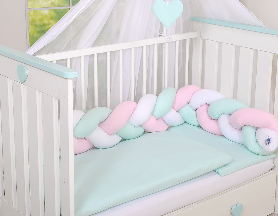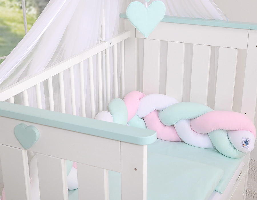 Flätad spjälsängsskydd, knutskydd - 100% bomull - mjukt skydd mot stötar och klämskador