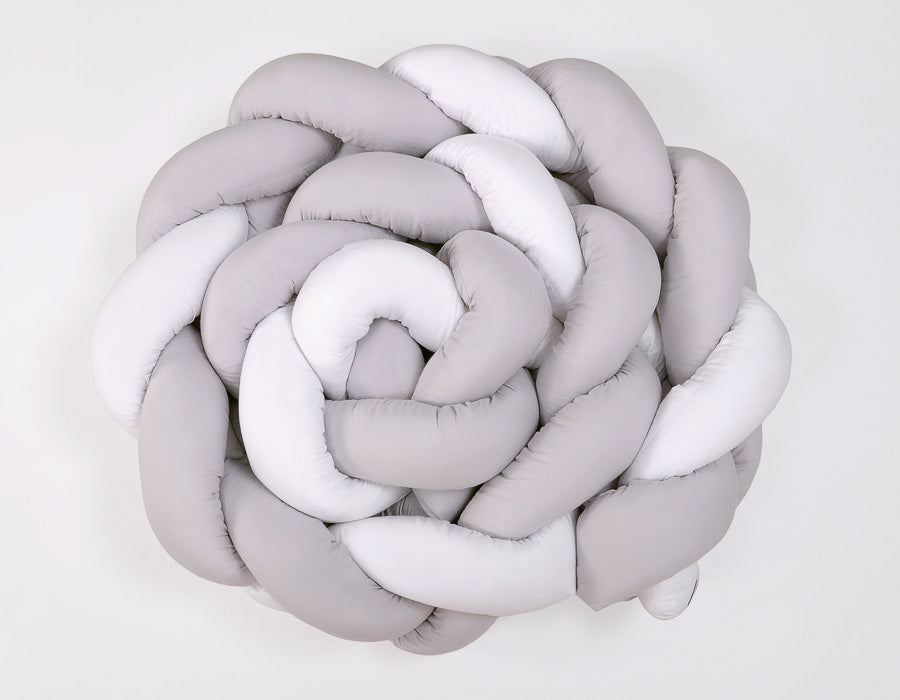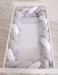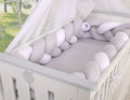 Flätad spjälsängsskydd, Knot Bumper, extra luftcirkulation – 100 % bomull, XXL, vitgrå