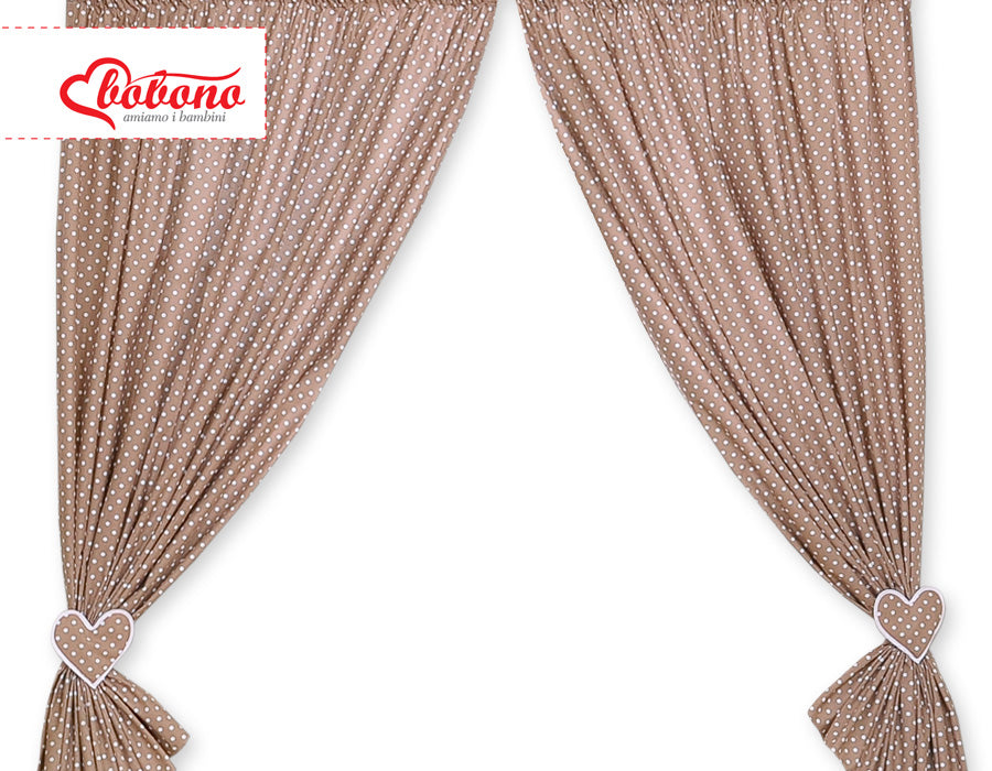 Gardiner till babyrummet - Hängande hjärtan vita med prickar på brunt