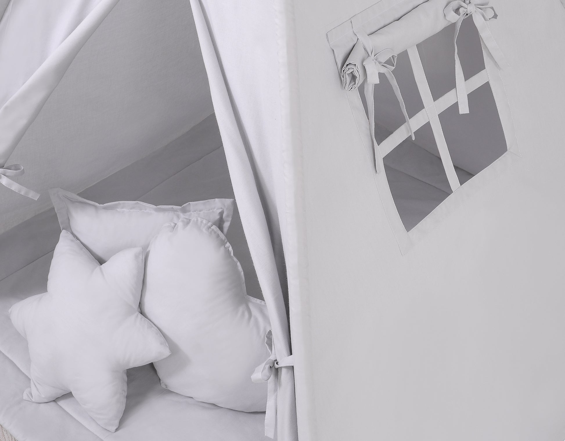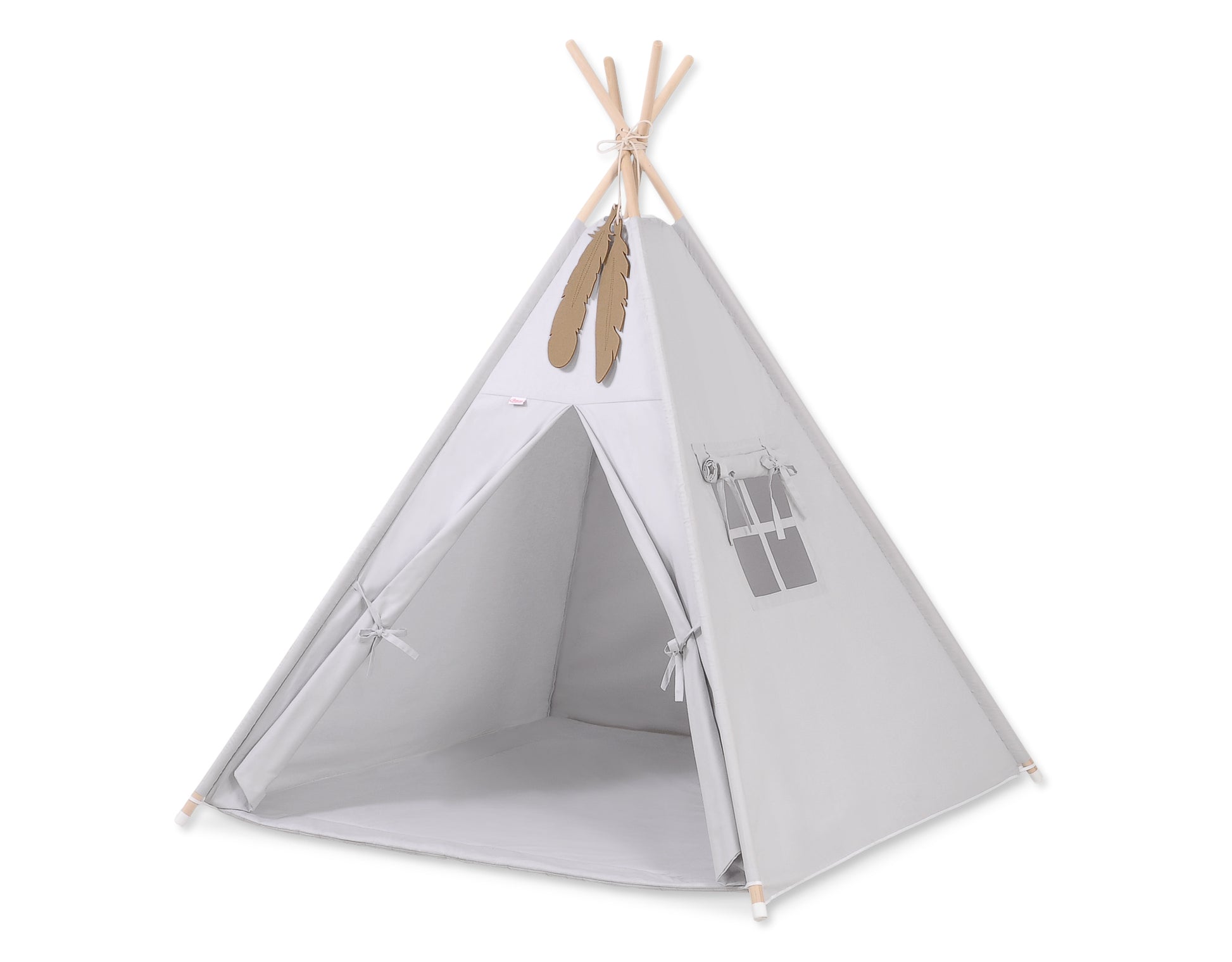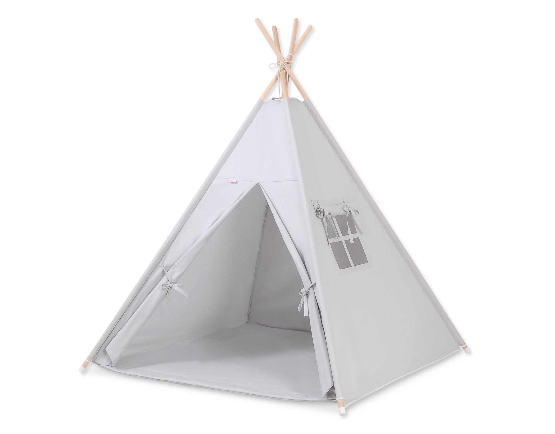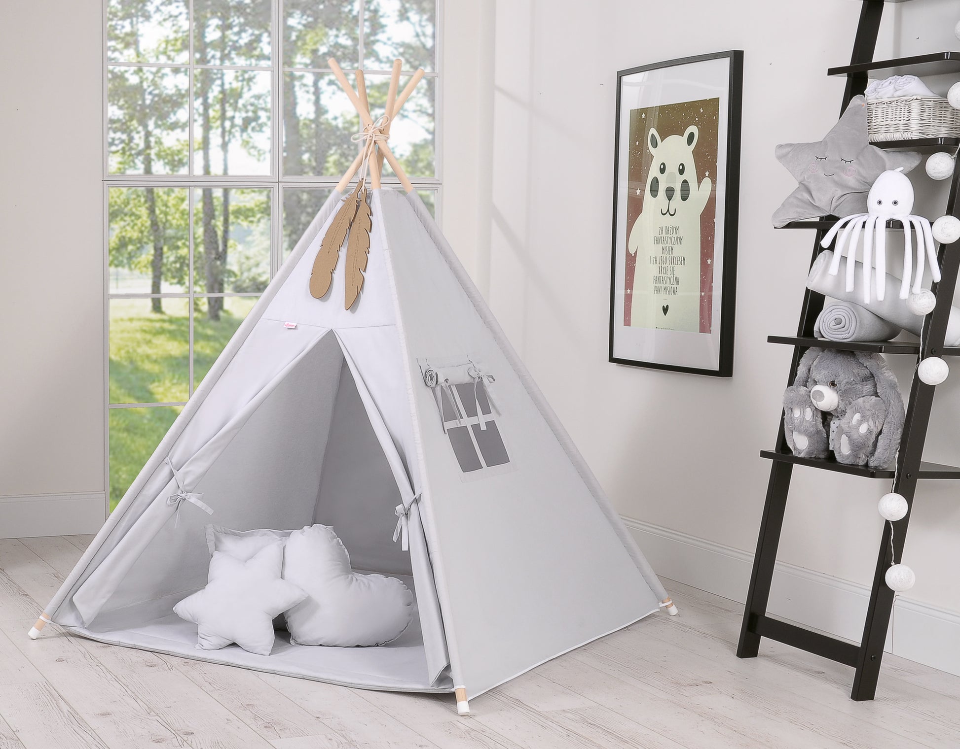 Grått tipitält för barn – lektält – med lekmatta, stabil och tvättbar bomull