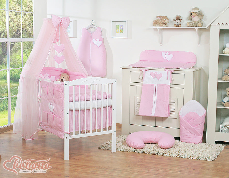 Stort myggnät i chiffong för babysäng med hängande hjärtan och rosett - rosa
