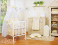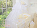 Stort vitt chiffongmyggnät för spjälsäng med cirkel och rosett - krämfärgade hängkrokar