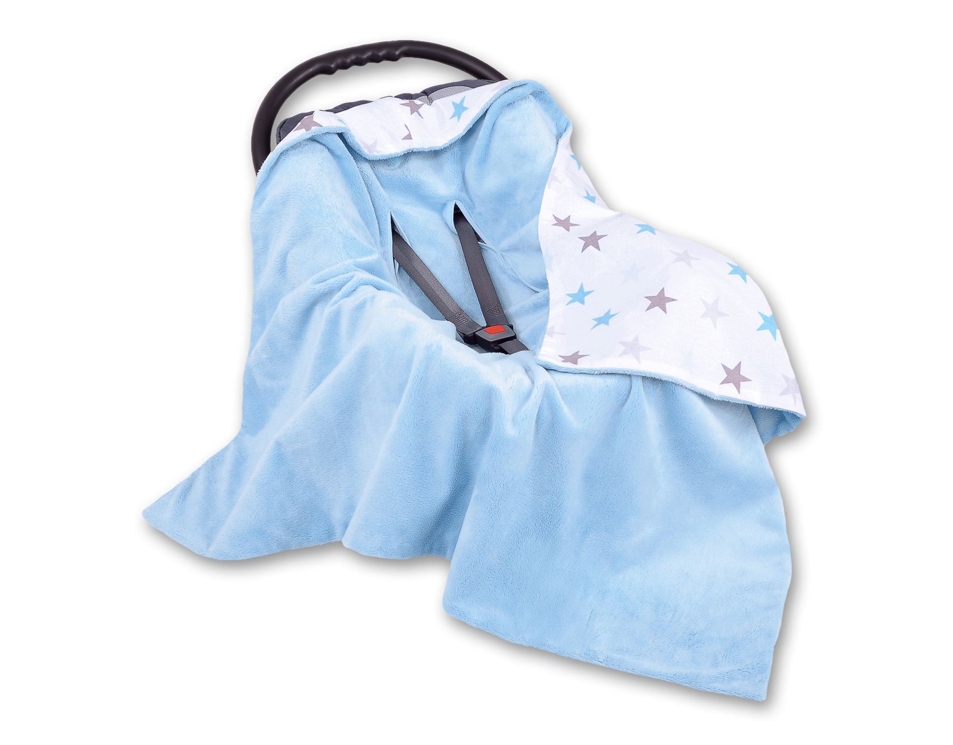 Stor dubbelsidig bilbarnstolsfilt – babyfilt – extra varm och mjuk – gråblå stjärnor