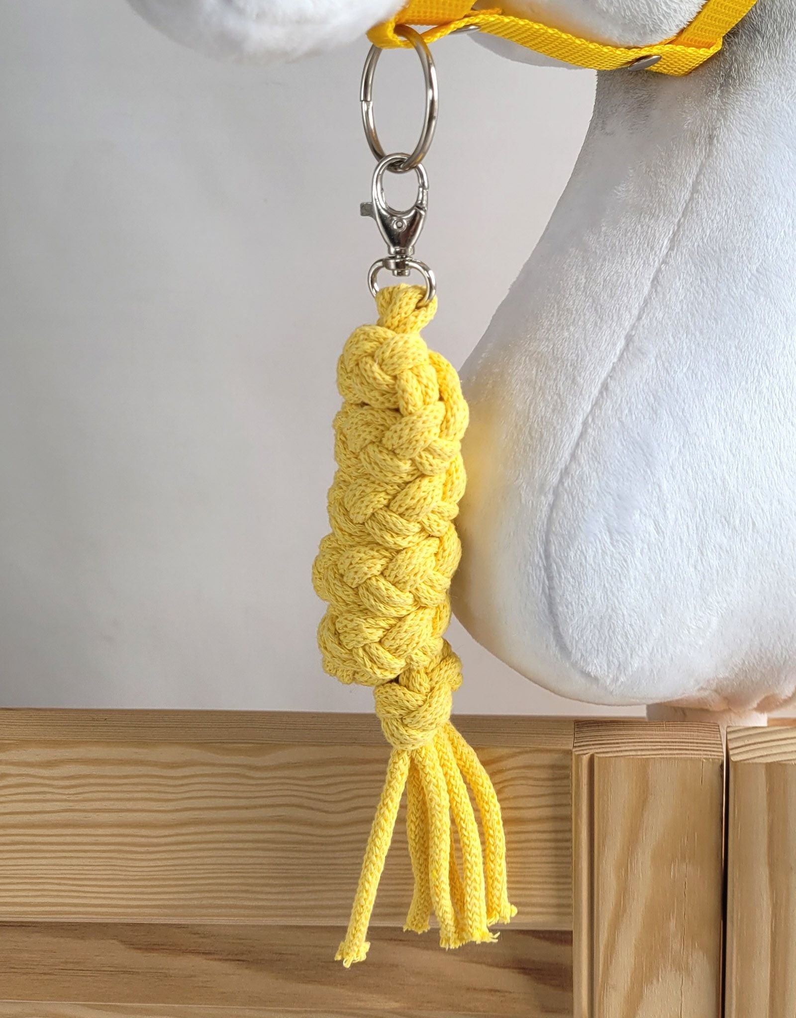 En praktisk och slitstark grimma för din hobbyhäst, tillverkad av högkvalitativt 1,5 cm brett band. Grimman är justerbar med ett spänne för perfekt passform och fästs enkelt med en silverfärgad krok. Metallelementen, såsom spännen och ringar, är snygga och funktionella.