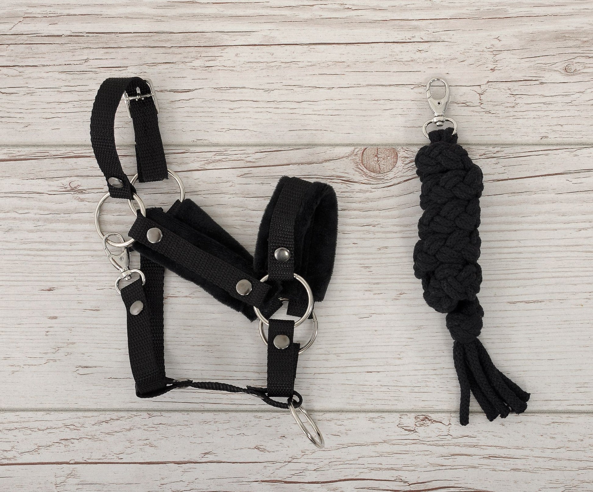 Grimma med repfäste - hästgrimma - Mjuk, pälsklädd, justerbar och slitstark för hobbyhäst