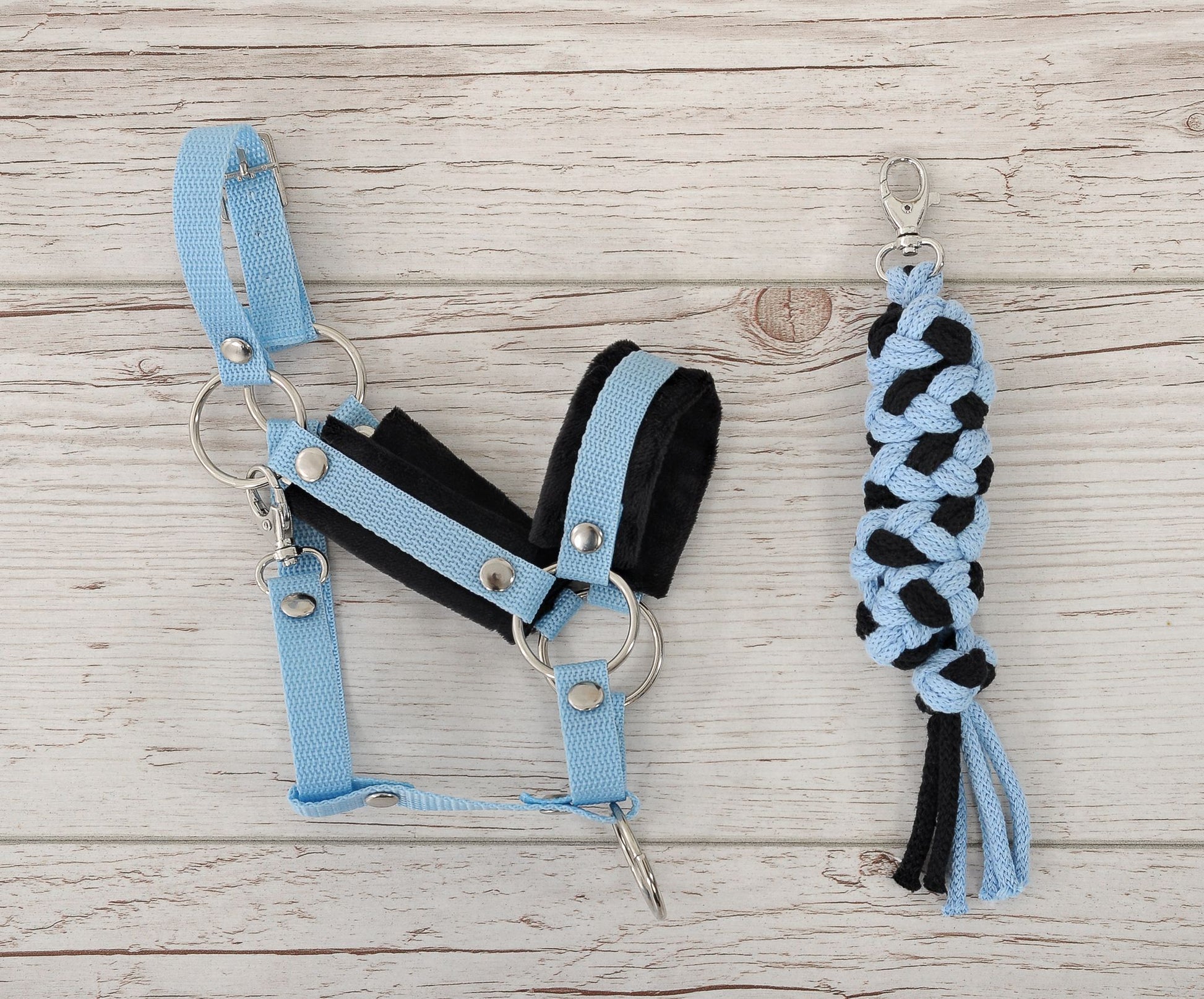 Hästgrimmaset - hästgrimma - justerbar och mjuk päls, inklusive dubbelvikt replina