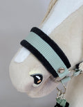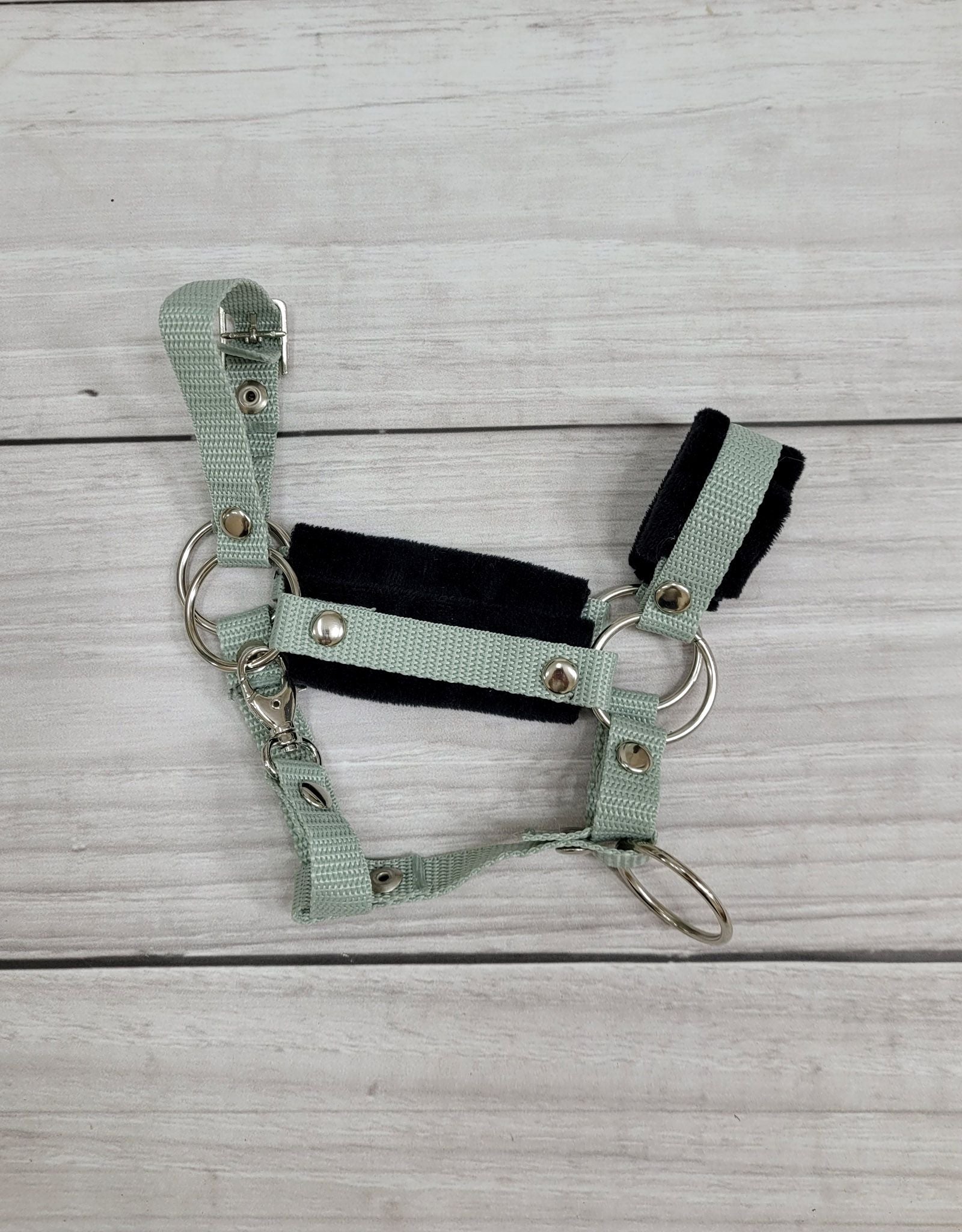 En praktisk och slitstark grimma för hobbyhästar, tillverkad av högkvalitativ 1,5 cm bred väv och mjukt minkytyg. Grimman är justerbar med ett metallspänne för perfekt passform och stängs enkelt med en silverfärgad karbinhake. Metallelementen – spänne, ringar och stängning – är eleganta och slitstarka. Grimman är smutsavvisande och enkel att använda. Den finns i en mängd olika moderiktiga färger som perfekt matchar våra hobbyhästar.