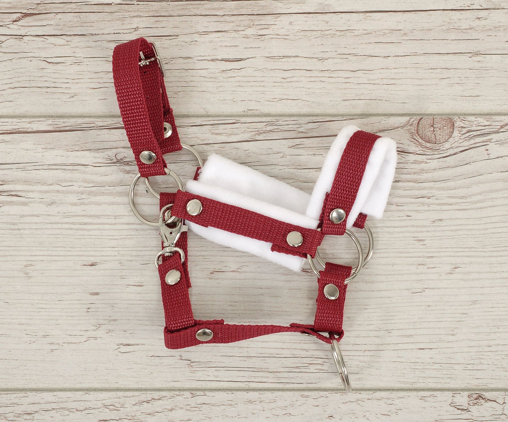 Set för hobbyhäst: Grimma A3 med vit fleece + Dubbelt reptyglar - vit-bordeaux