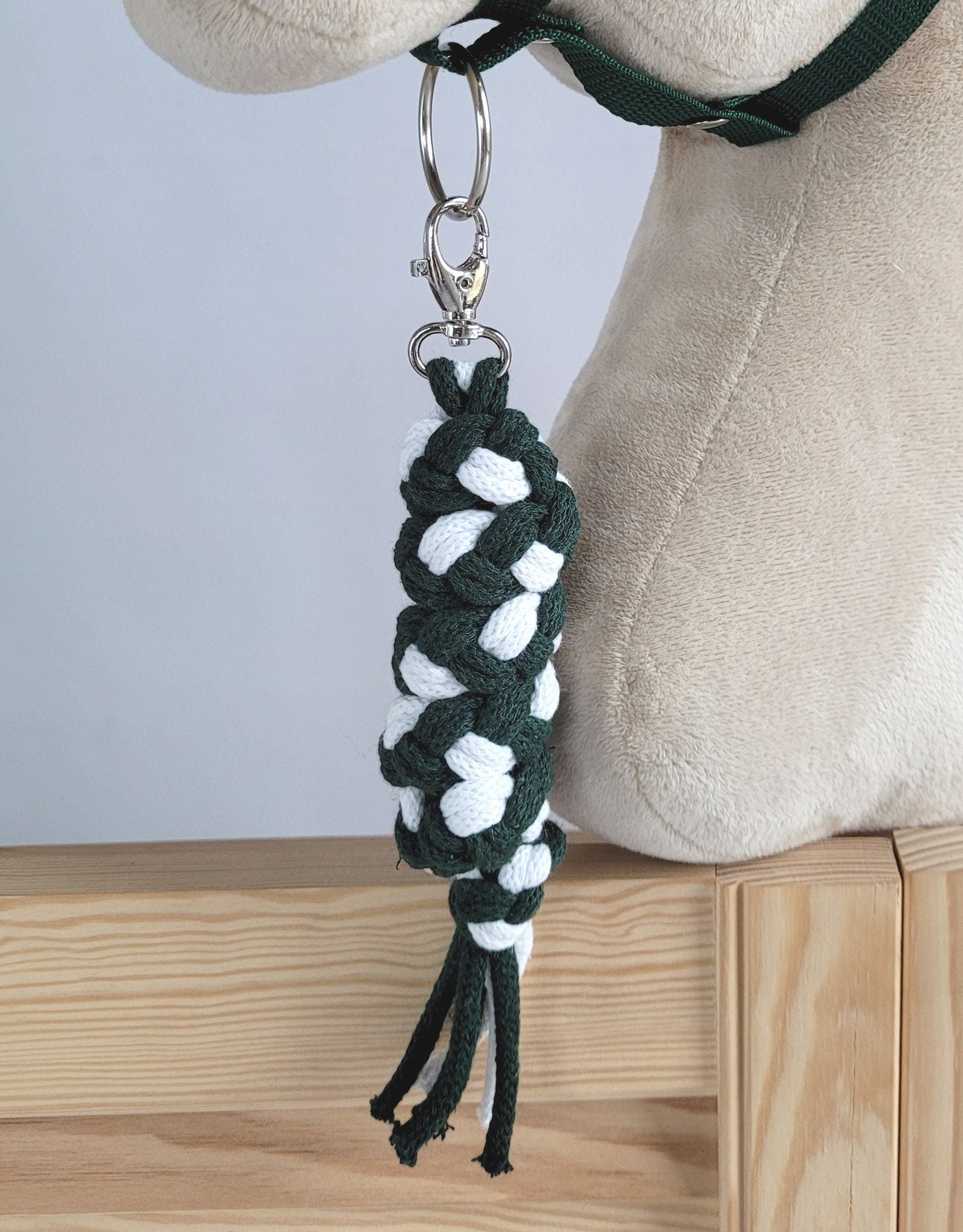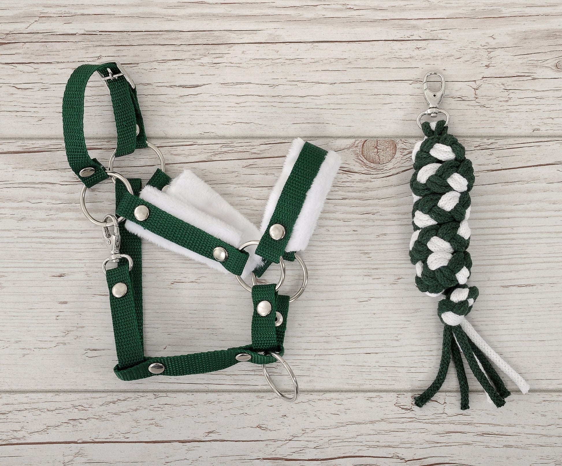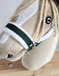 Grimmaset hobbyhäst, hästgrimma, bekväm och justerbar – vit-flaskgrön – mjuk päls