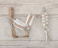 Käpphästset: Grimma A3 med vitt pälsfoder + dubbelflätat koppel - Vit-Beige