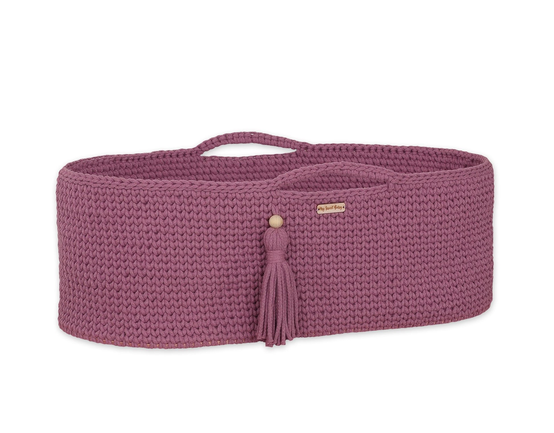 Snygg bohemisk korg, 100 % handgjord med kärlek. Denna babykorg är inte bara ett vackert tillskott till barnrummet utan också praktisk för vardagsbruk. Den virkade spjälsängen är den perfekta viloplatsen för din lilla.