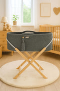 Handgjord BOHO-korg med stativ – spjälsäng – andningsbar bomull, antibakteriell madrass