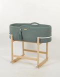 Setet levereras komplett med ett handgjort vaggställ i bokträ, perfekt matchat med BOHO-korgen. Dess solida men lätta konstruktion möjliggör mjuk vaggning, vilket stimulerar ditt barns neurologiska utveckling. Vaggfunktionen är låsbar, vilket gör att stället även kan fungera som ett fast stöd.