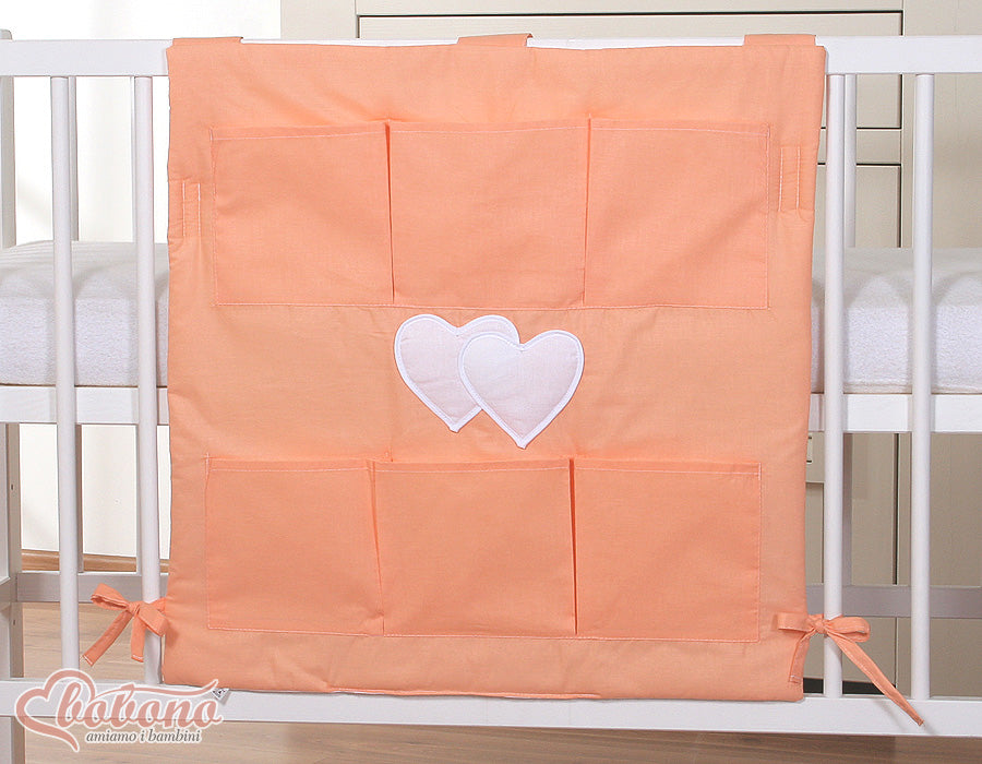 Håll allt du behöver inom räckhåll med vår spjälsängsorganisatör Hanging Hearts . Denna praktiska hängmatta har sex rymliga förvaringsfickor för leksaker, blöjor, våtservetter, nappar och andra nödvändigheter. Tillverkad av 100 % bomull och lätt att tvätta i 40 °C. Perfekt för en organiserad och praktisk babymiljö.