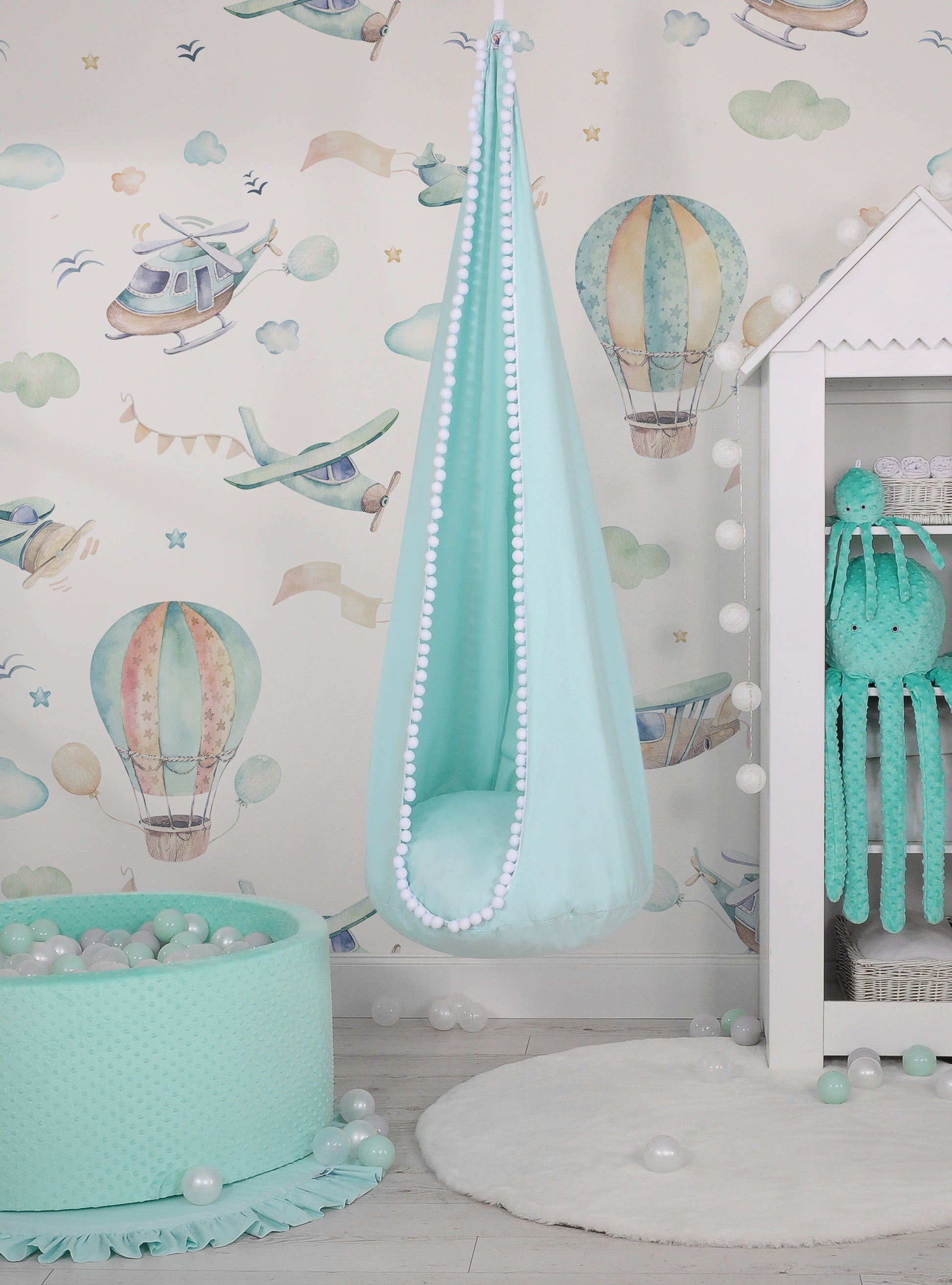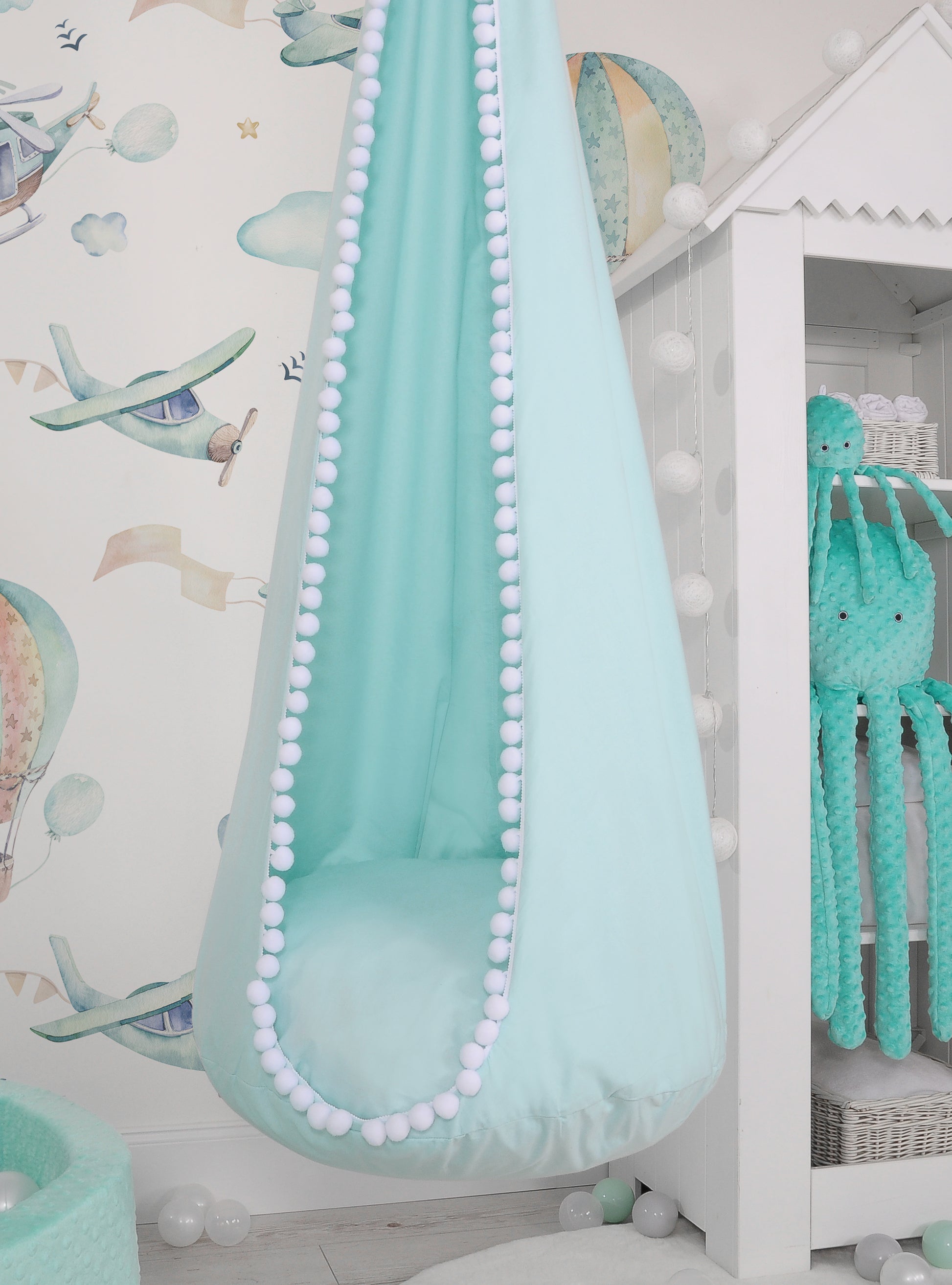 Hängande hängmatta kokong, barngunga, bekväm och säker - bomull, mintgrön
