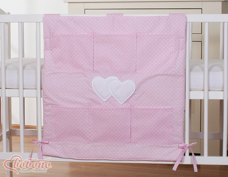 Hängande sängkorg, förvaringskorg, 6 praktiska fickor för babyartiklar - hjärtmönster i bomull