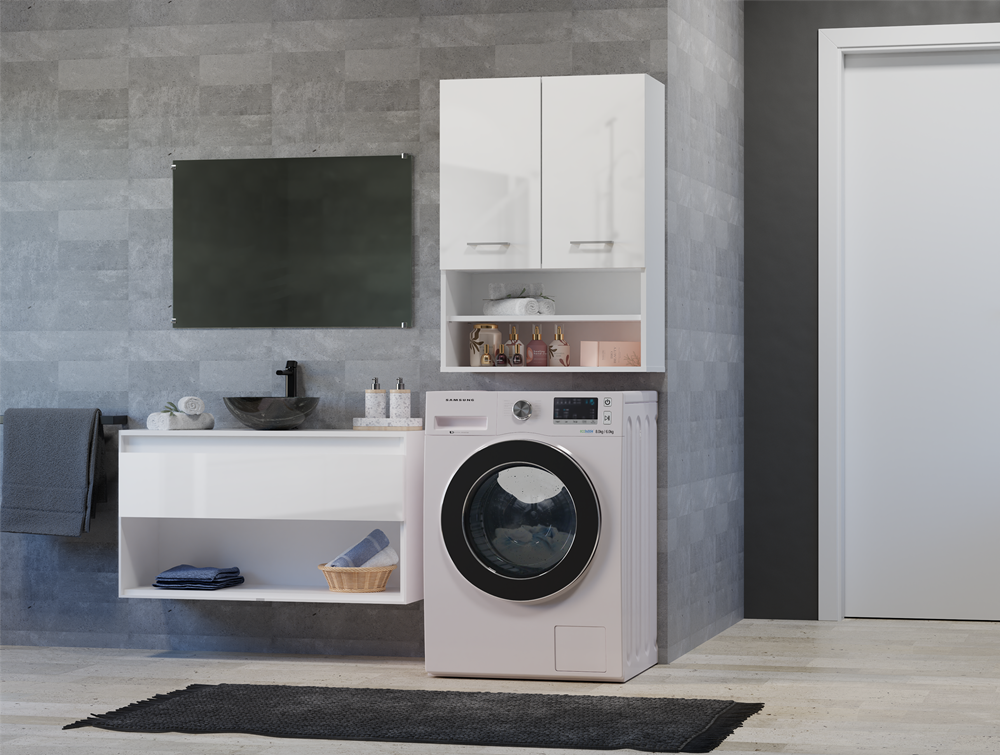 Hangkast boven wasmachine Pola Mini DK met deuren en planken | Glanzend wit | 64x90x30 cm