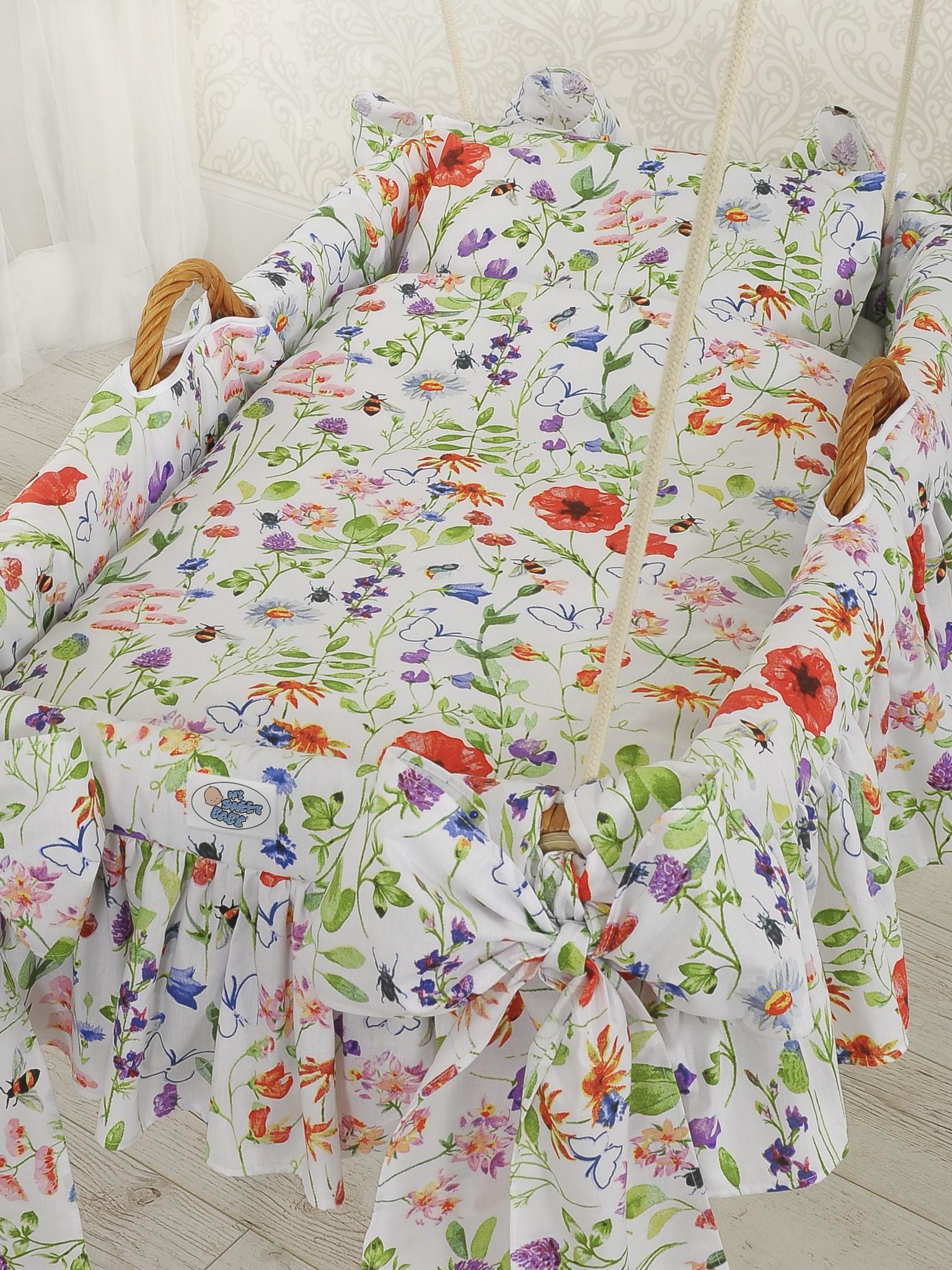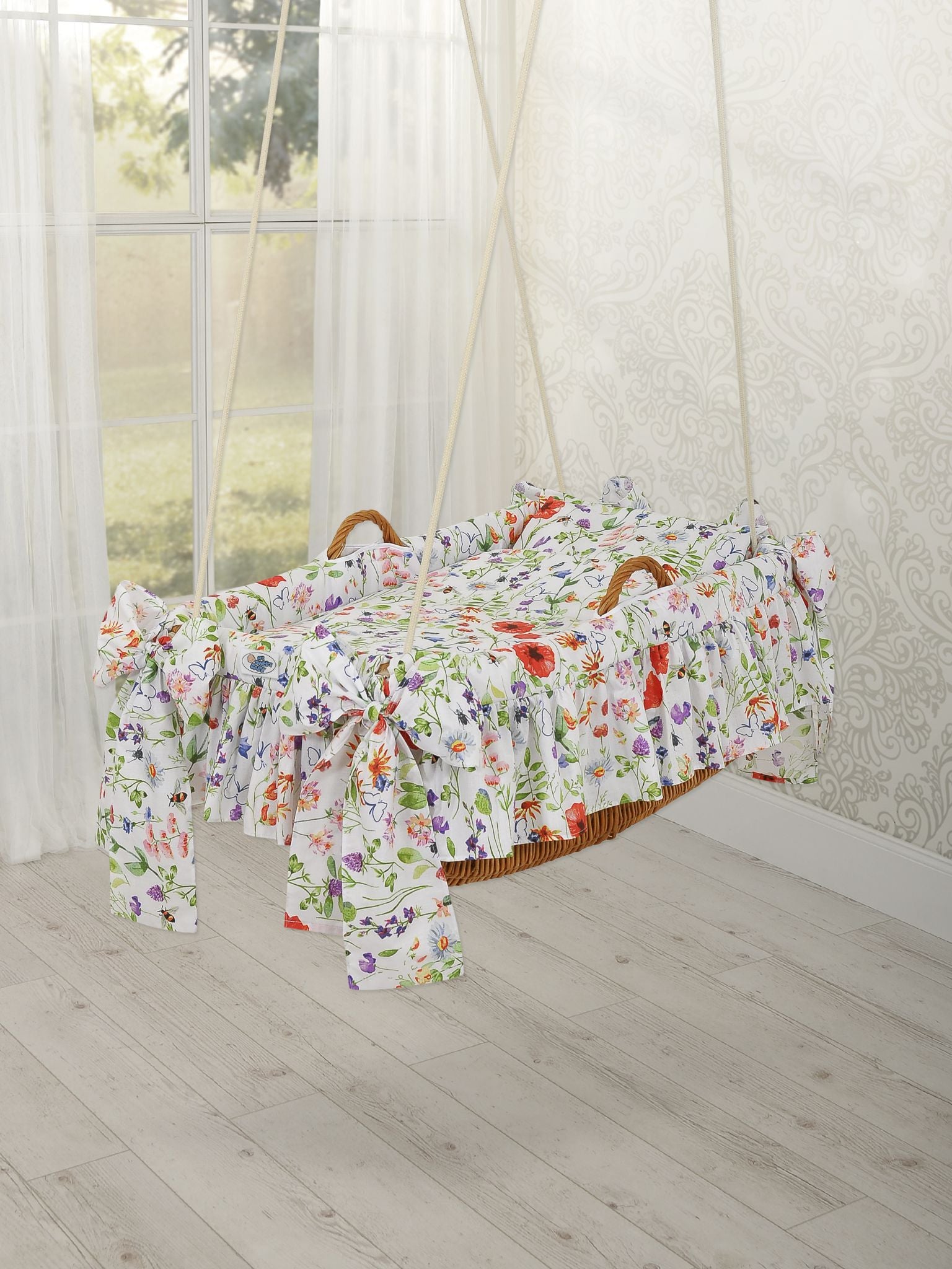 Denna vackra handvävda vagga i rotting erbjuder din lilla en trygg och elegant plats att vila på. Det medföljande överdraget är tillverkat av 100 % bomull och ger en mjuk och bekväm känsla.