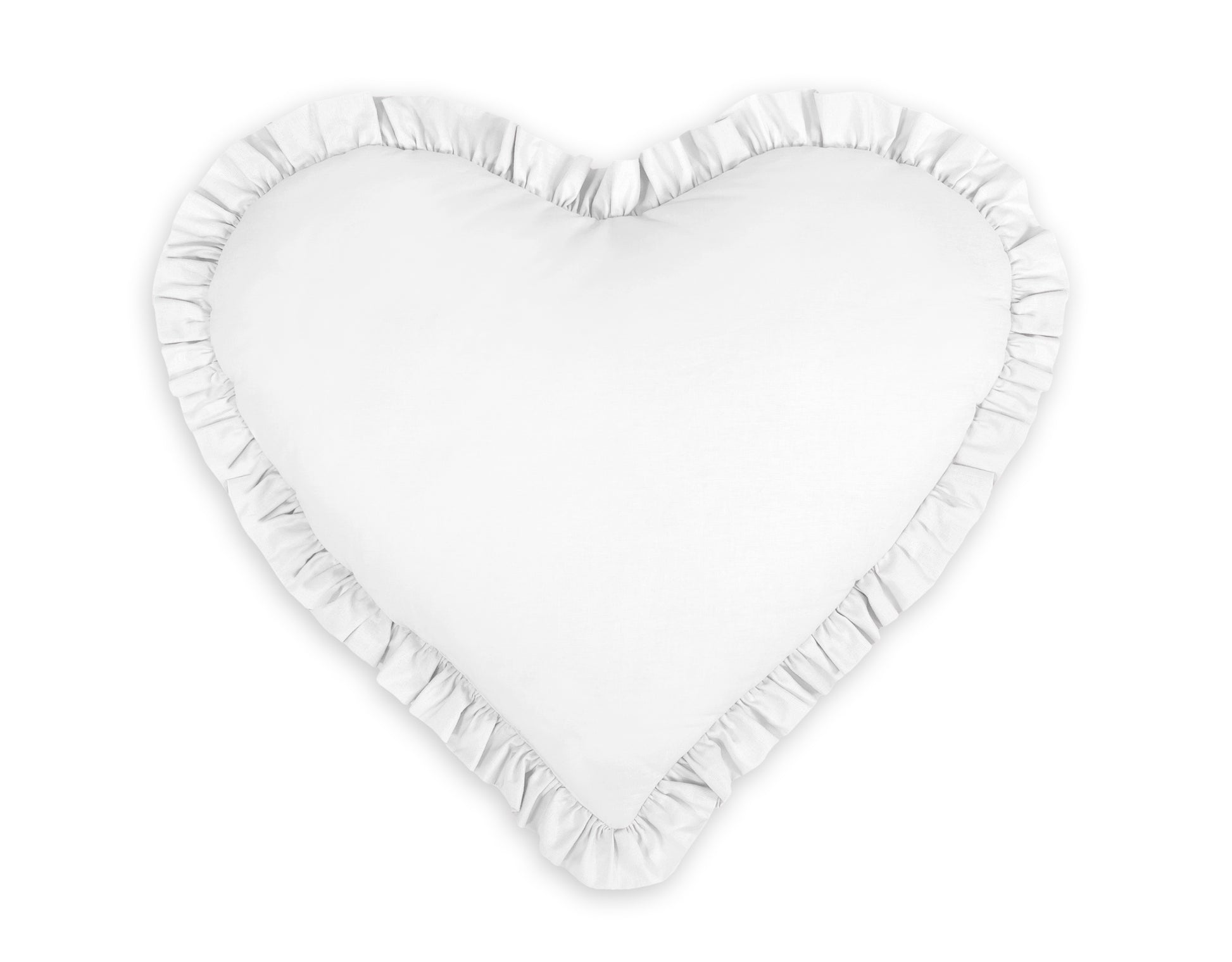 Elegant hjärtformad kudde med en fin volang. Tillverkad av 100 % bomull (med ett fast överdrag) och fylld med Eco Fillball-certifierade silikonbollar, en högkvalitativ syntetfiber som ger perfekt stöd och luftcirkulation. Perfekt som en snygg dekoration för ett barnrum.