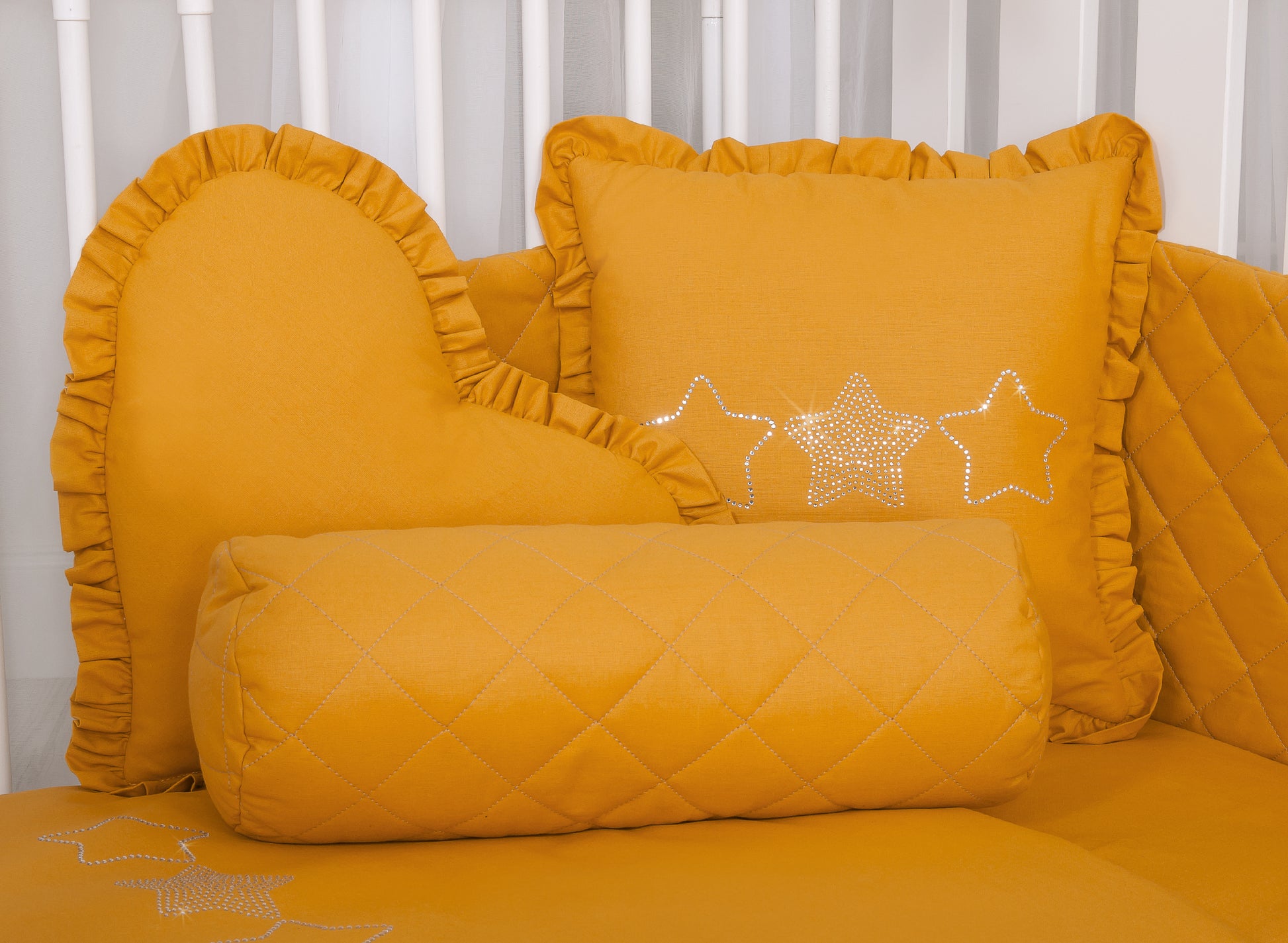 Dekorativ hjärtformad kudde - honungsgul
