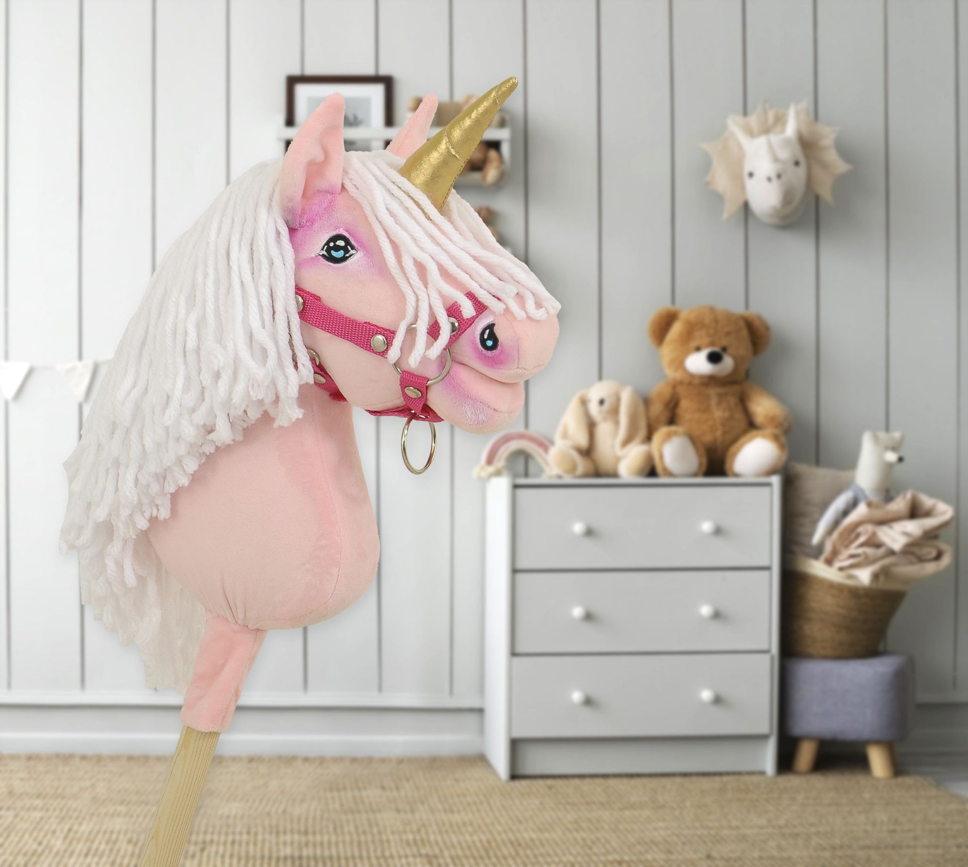 Käpphäst enhörning – hobbyhäst – handgjord och mjuk för fantasifull och säker lek
