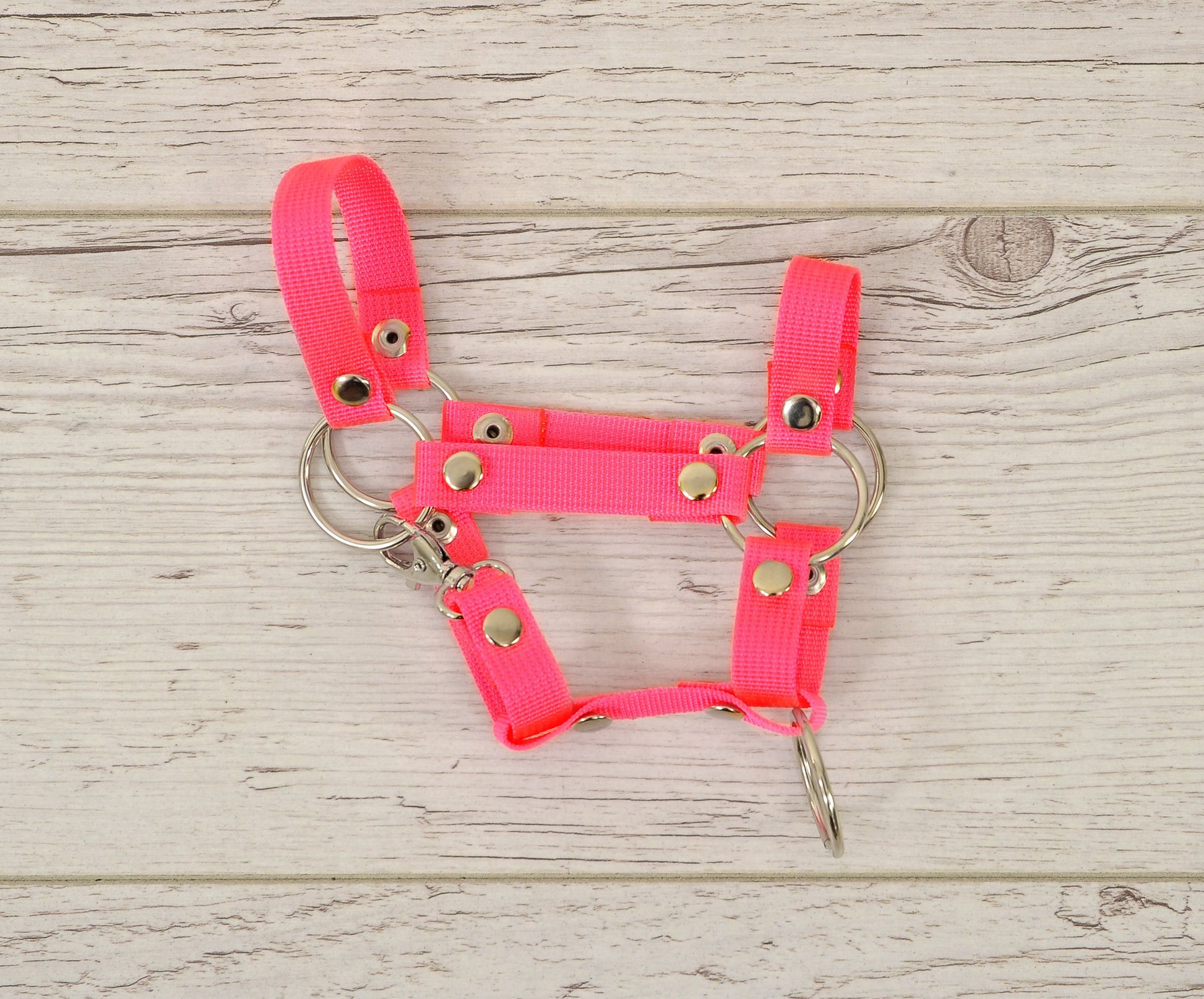 Praktisk och slitstark grimma för din hobbyhäst, tillverkad av högkvalitativt 1,5 cm brett neonband. Den har en enkel stängning med en robust karbinhake.