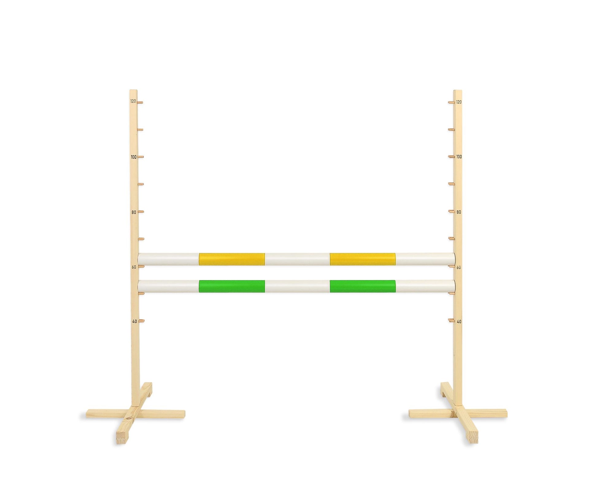 Hinder för hobbyhäst 120 cm med två stänger i gult och grönt