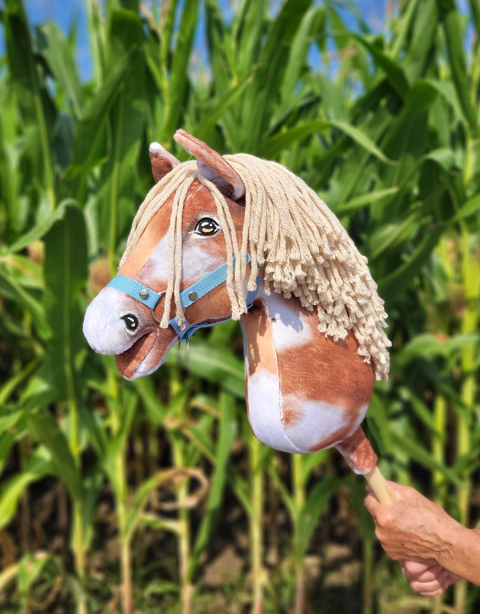 Super Hobby Horse Premium - Tobiano Bay Häst med Beige Man