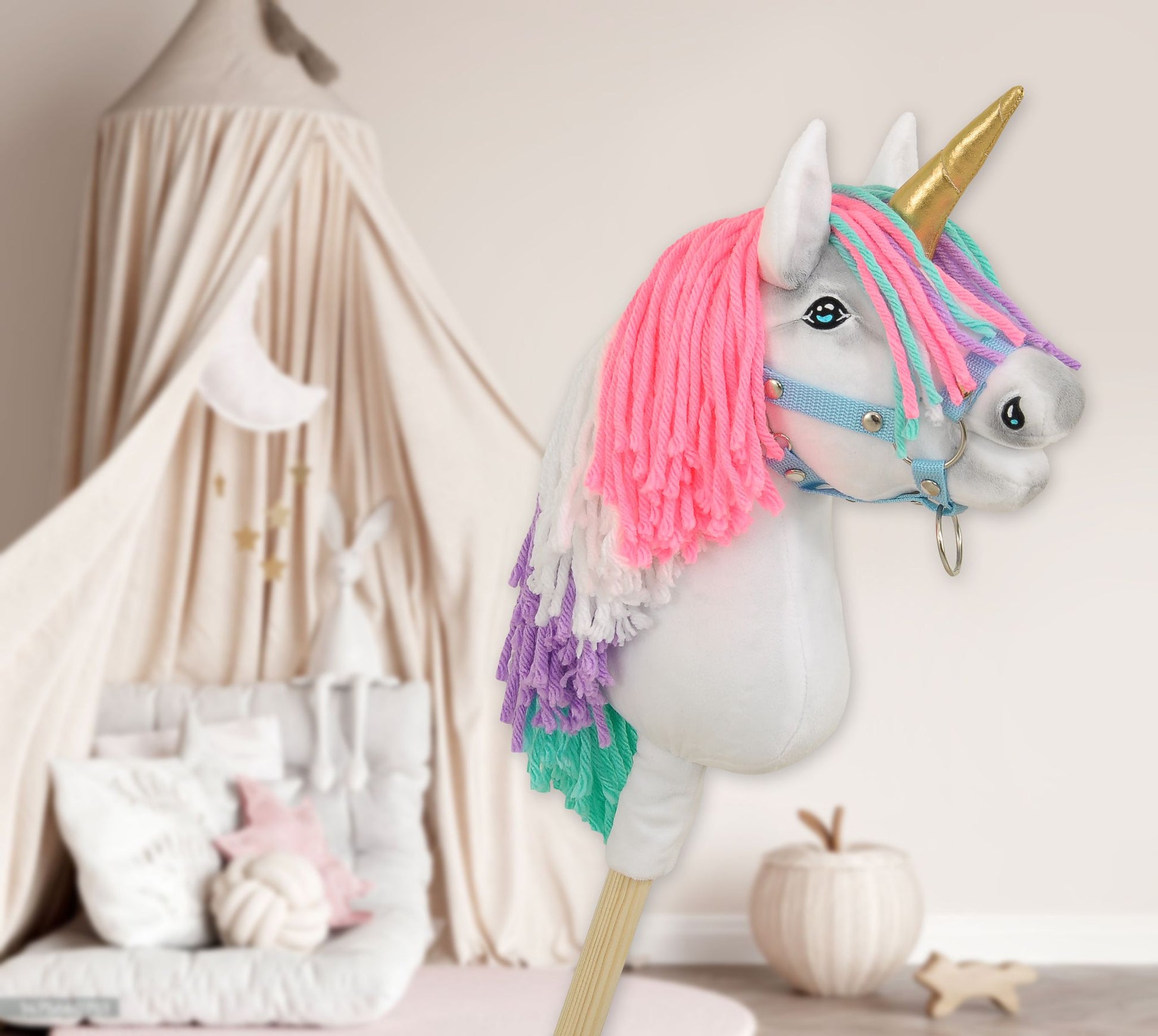 Käpphäst enhörning - käpphäst - handgjord, mjuk plysch, Oeko-Tex-certifierad