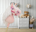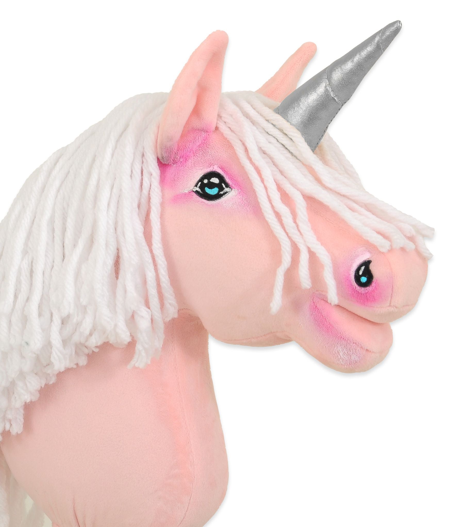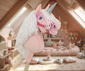 Upptäck magin hos vår vackra rosa enhörning på pinne, utrustad med en lång, mjuk vit man och ett skimrande silverhorn. Denna fluffiga hobbyhäst är perfekt för att skapa förtrollande frisyrer och ger timmar av skoj både inomhus och utomhus.