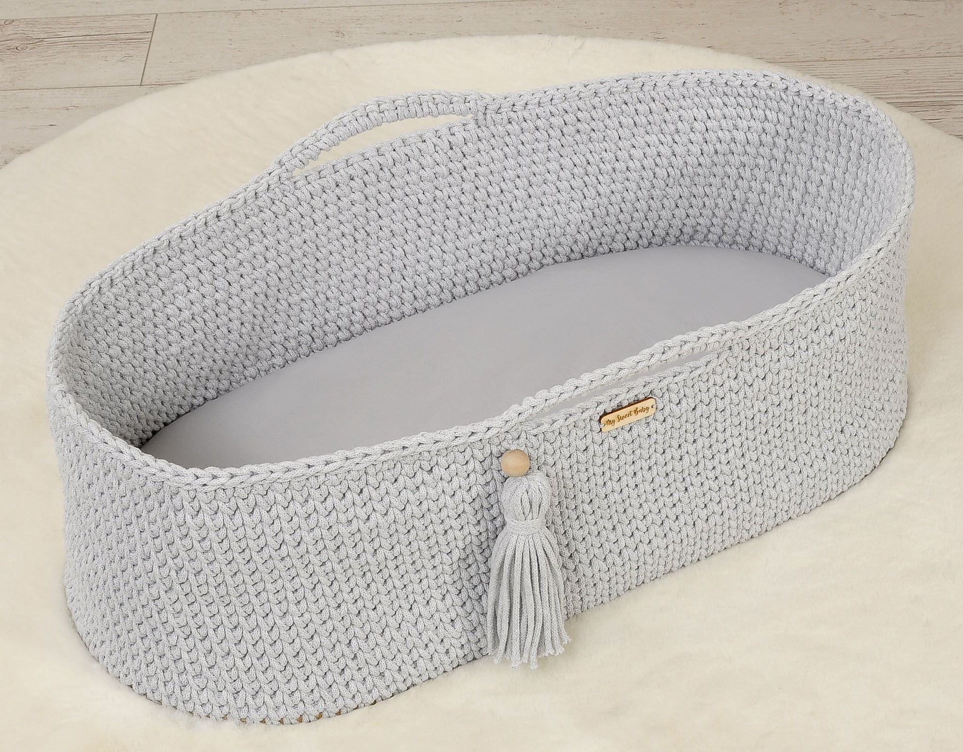 - 1 x grått bomullslakan för korgmadrass 75x35 cm