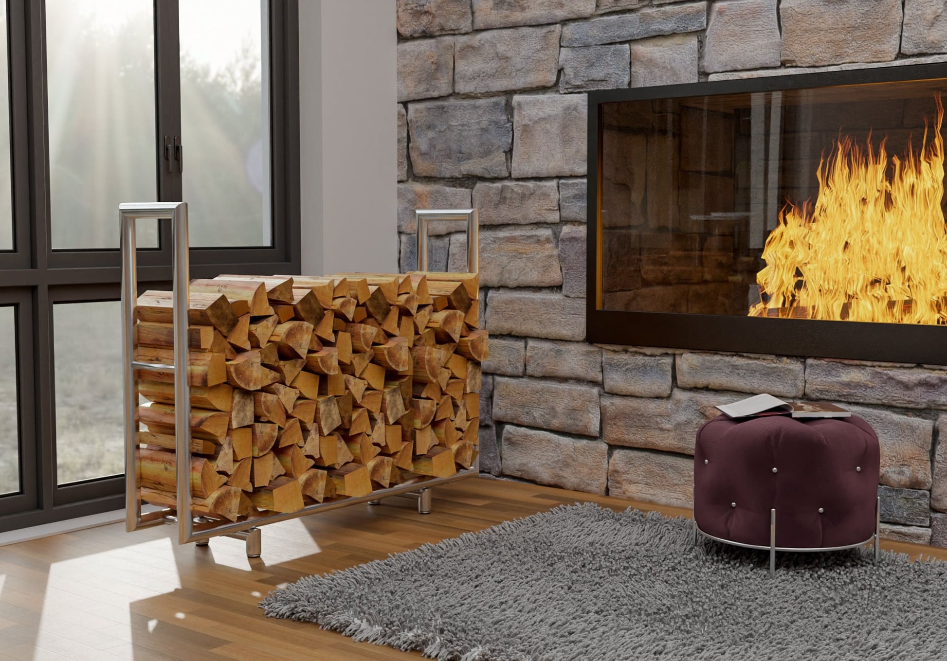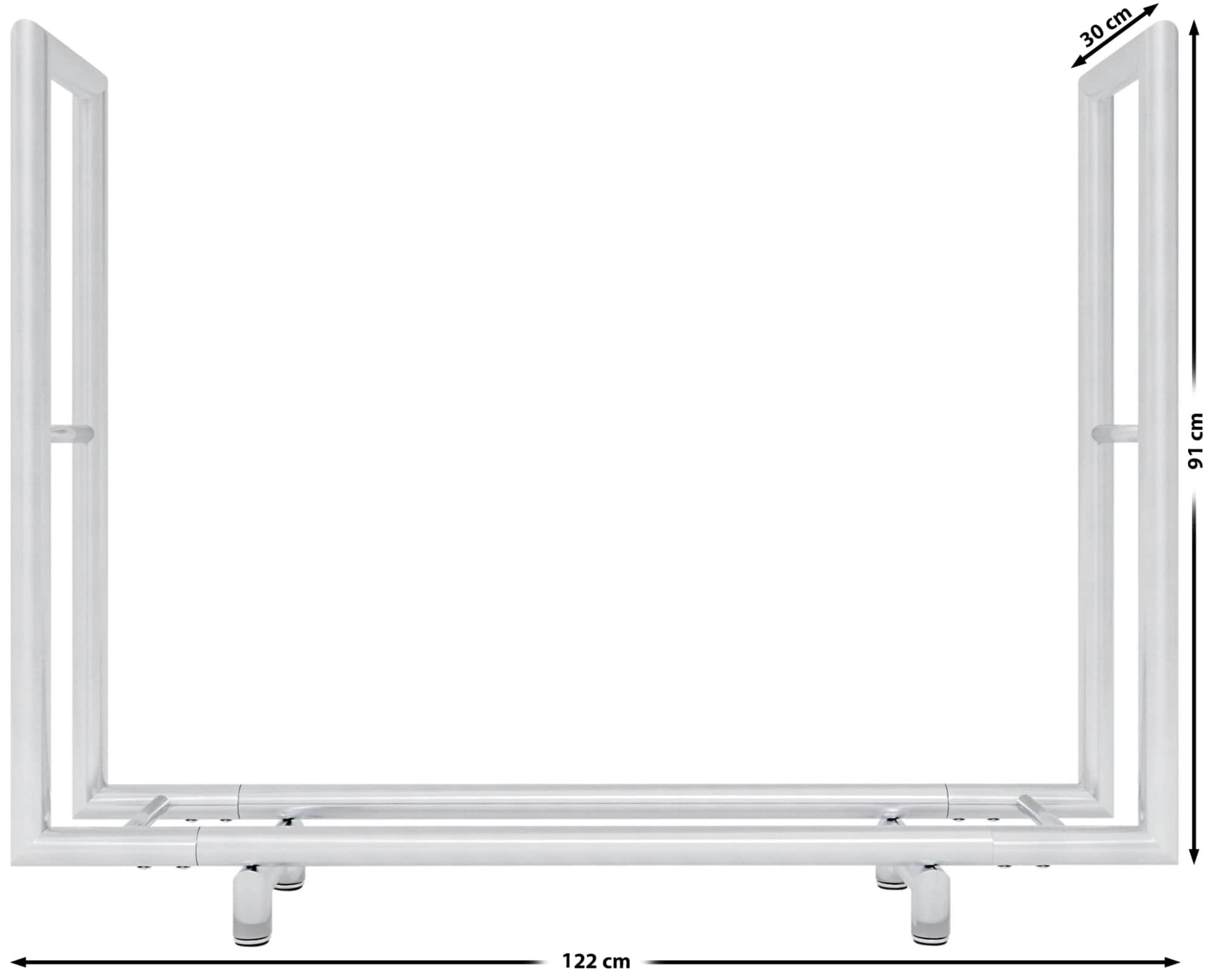 Denna moderna vedförvaringsenhet passar perfekt in i alla vardagsrum tack vare sin moderna och subtila design. Tillverkad av högkvalitativt rostfritt stål erbjuder den en stabil och hållbar konstruktion. Färgen är avslutad med en slitstark pulverlackering. Denna produkt är en betryggande syn var som helst, oavsett om den placeras i trädgården, vardagsrummet eller vid eldstaden. De fyra golvskydden på undersidan ger extra skydd mot repor.