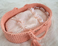 Snygg inbäddad docka med en söt rosett. Perfekt för dockvagnar, spjälsängar och korgar. En miniatyrversion av en riktig babyinbäddad docka, tillverkad av samma högkvalitativa, certifierade material.