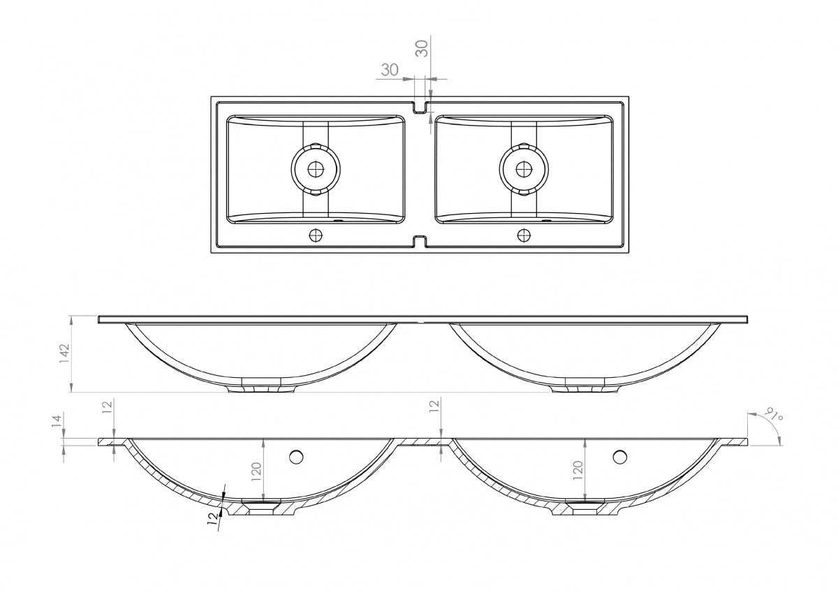 Inbouwwastafel Nicole 120 cm - Dubbele Wastafel voor Badkamerkasten