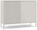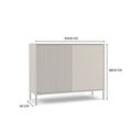 - Materiaal: Lichaam: 16 mm gelamineerde spaanplaat; Geribbeld front: 18 mm gemelamineerde MDF-plaat; Gladde deur: 16 mm gelamineerde spaanplaat; Poten: Metaal, 13,5 cm hoog