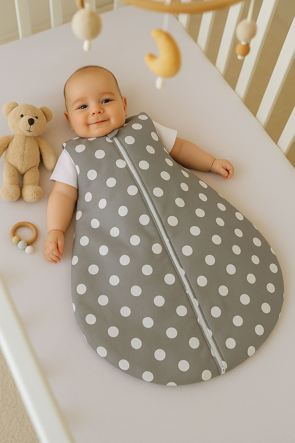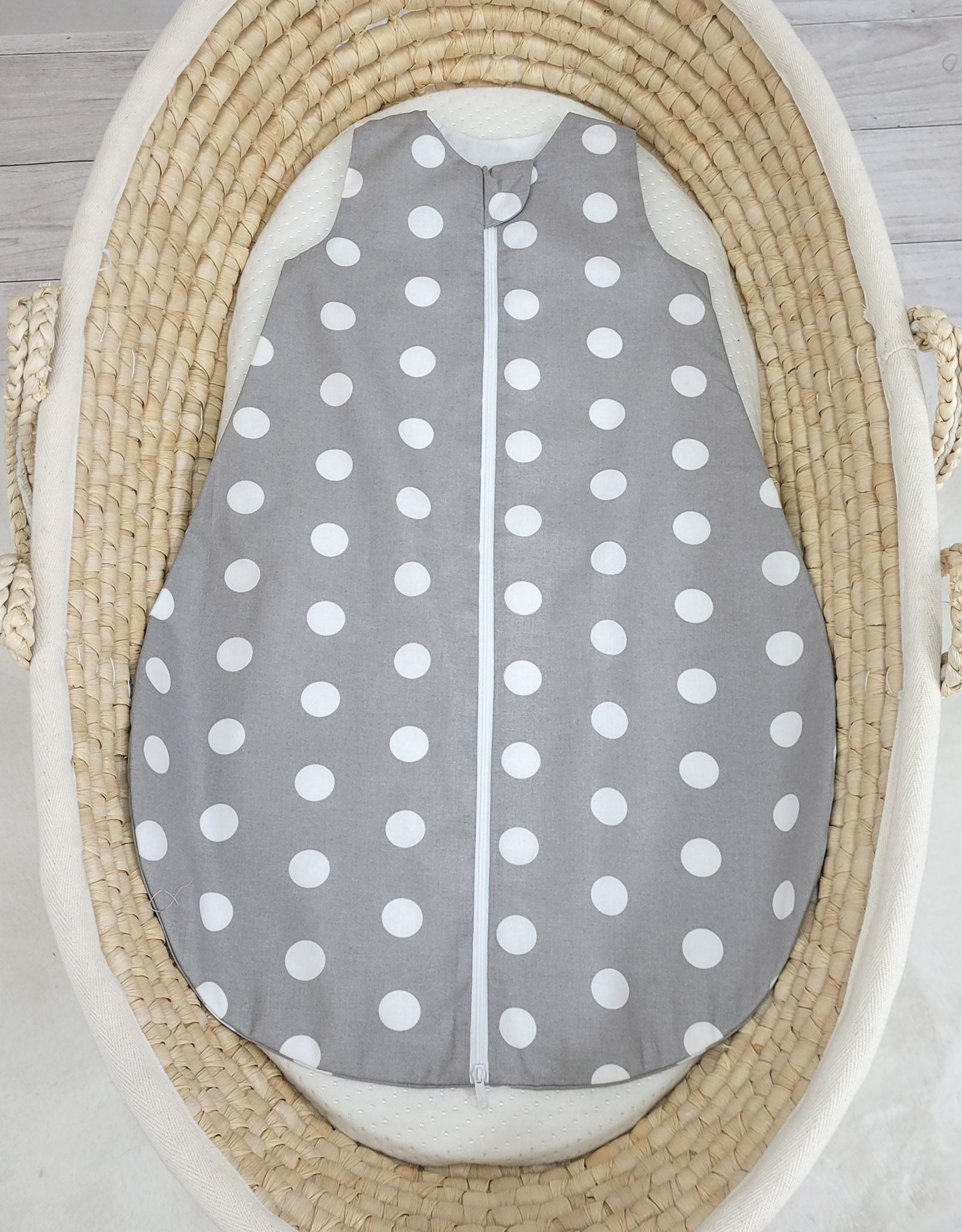 Bomullssovpåse för baby S 0-6 månader för sommaren TOG 1.0 – prickar på grått