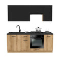 De VARIO 200CM Z4 keukenmeubelset biedt een perfecte oplossing voor kleinere woonruimtes zoals studio’s of compacte appartementen. Het moderne design met zwarte bovenkastfronten en onderkasten in Evoke Eik creëert een stijlvolle en tijdloze uitstraling. Zwarte handgrepen accentueren de strakke lijnen, terwijl de duurzame materialen bestand zijn tegen krassen, zonlicht en hoge temperaturen. De zorgvuldig ontworpen kastindeling en toegankelijke deuropening maken deze set ideaal voor wie optimaal gebruik wil maken van een beperkte ruimte zonder concessies te doen aan functionaliteit.