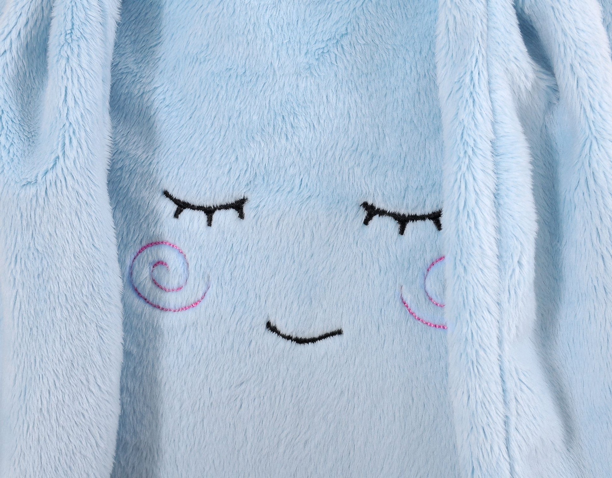 Barnväska med axelrem - söt väska - mjukt minkmaterial, med kaninöron, blå