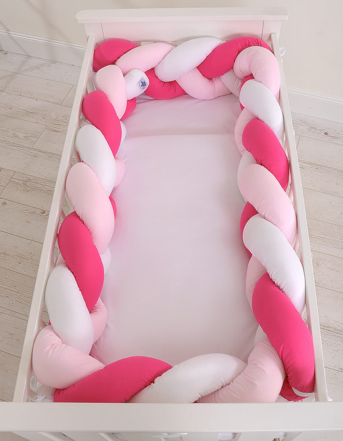 Knappöverdrag XXL - flätat spjälsängsskydd - optimalt skydd och ventilation, bomull