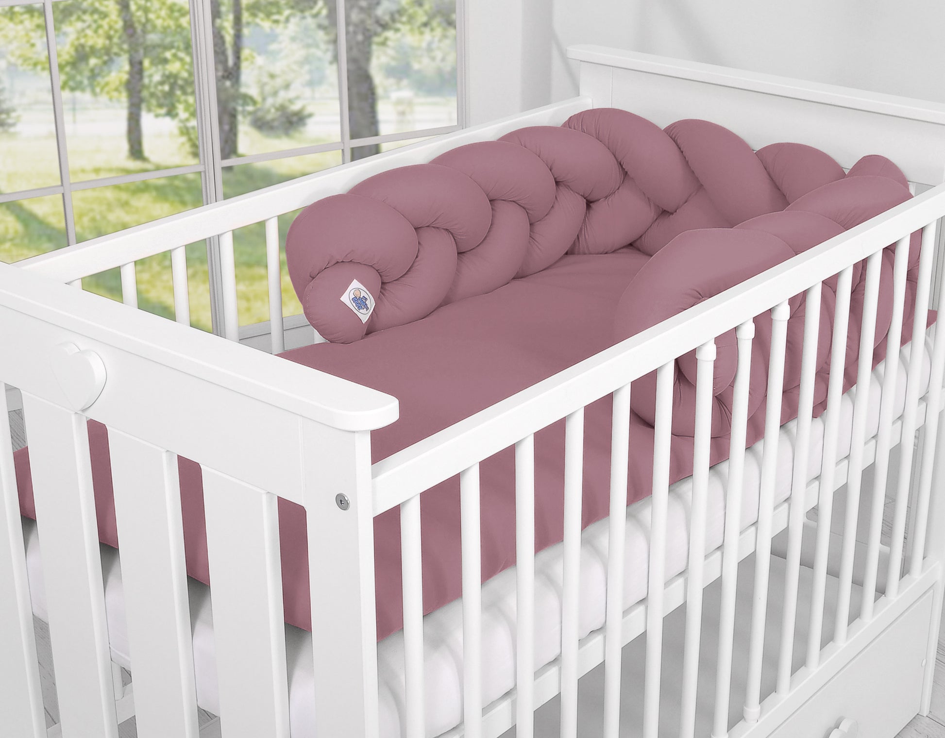 Snyggt och extra mjukt spjälsängsöverdrag, tillverkat av 100 % bomull. Tack vare sin flätade design ger överdraget ett säkert skydd för ditt barns händer, fötter, huvud och kropp, och förhindrar att barnet fastnar mellan spjälsängsstängerna.