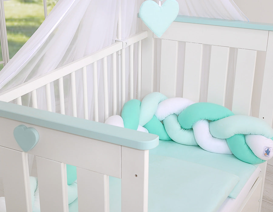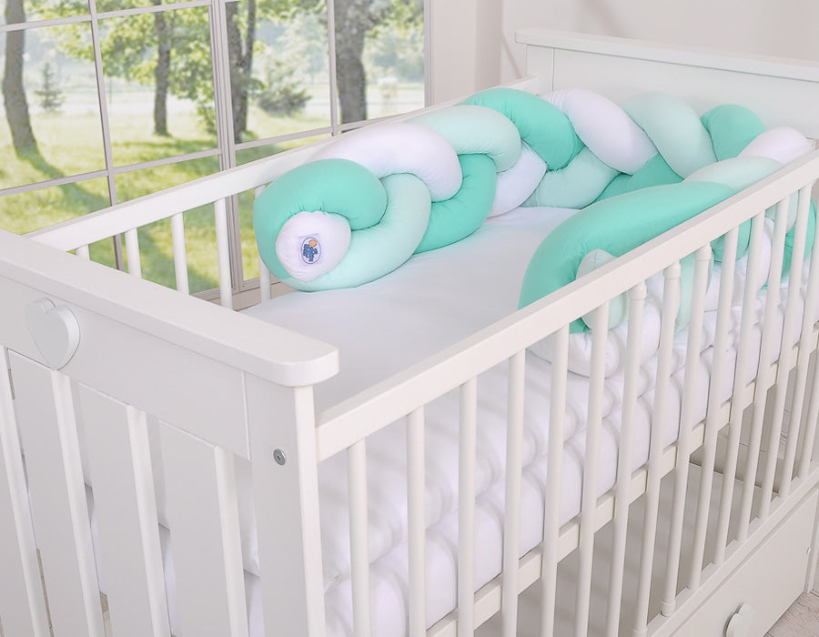 Knutskydd till spjälsäng - flätad sänggrind - extra mjuk bomull, skyddar mot klämskador
