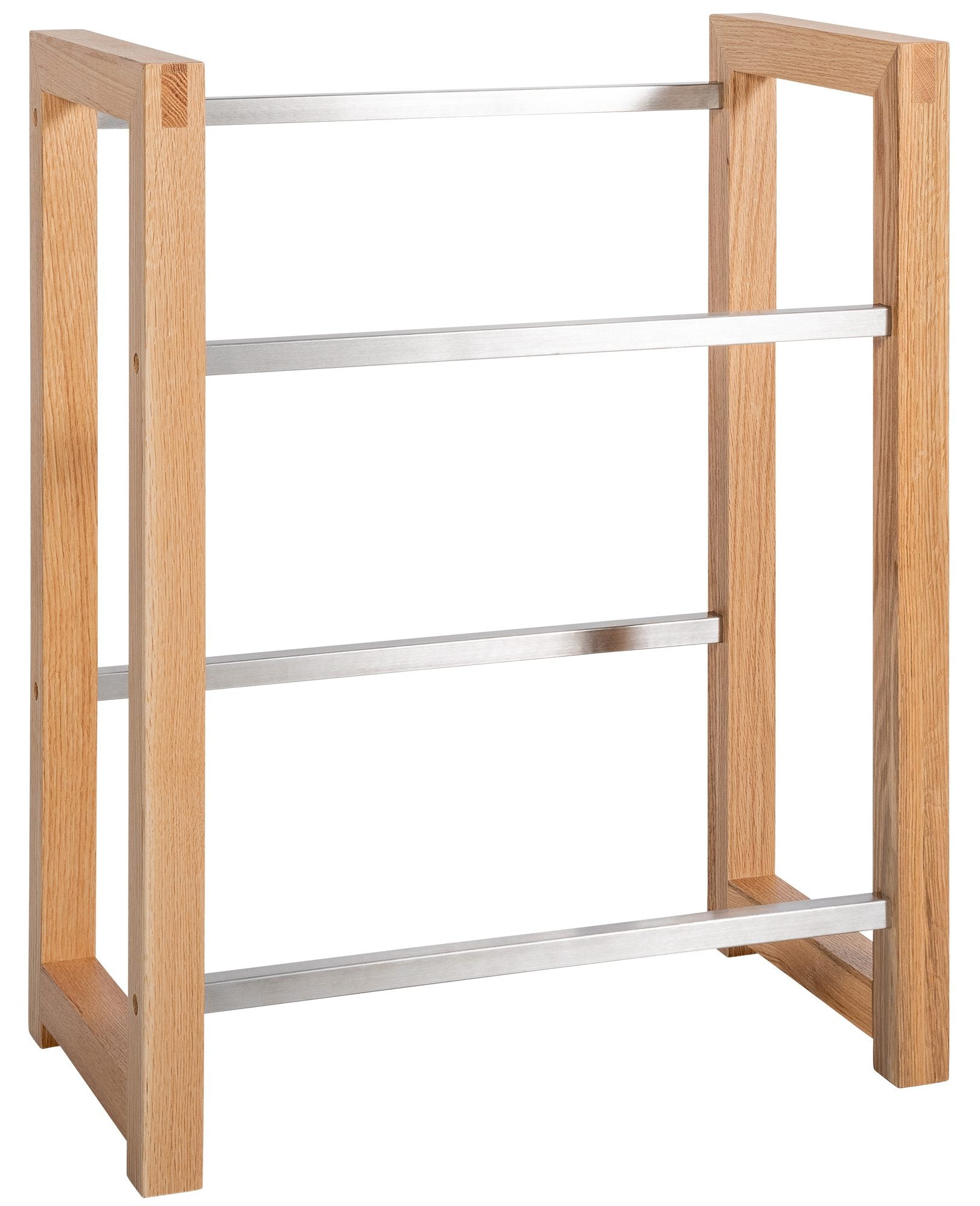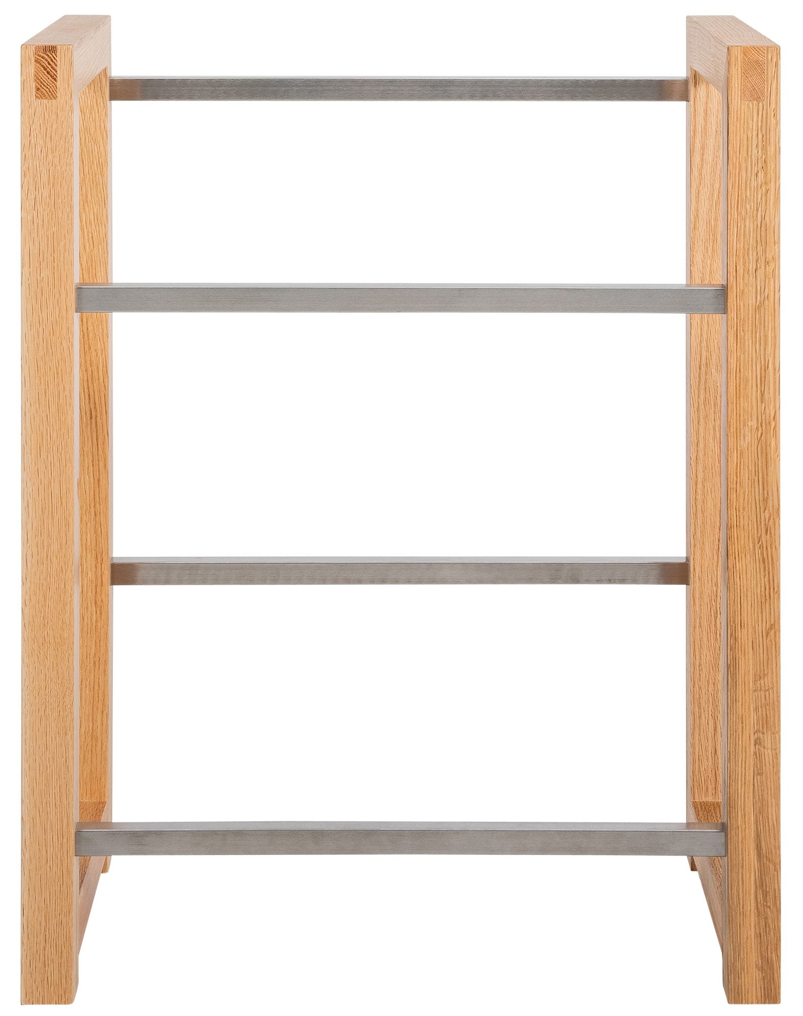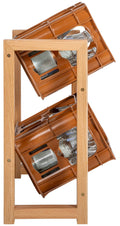 Den robusta metallstrukturen och den ljusa träramen skapar ett högkvalitativt utseende. Detta gör att lådstället passar sömlöst in i olika rum utan att störa den övergripande atmosfären. Dess harmoniska materialkombination gör det till en idealisk lösning för att skapa ordning och stil i ditt hem. Detta estetiska dryckesställ är det perfekta tillskottet till ditt hem.