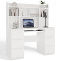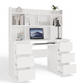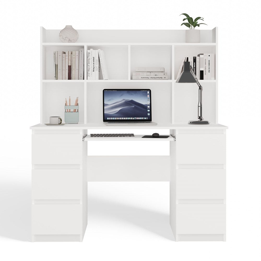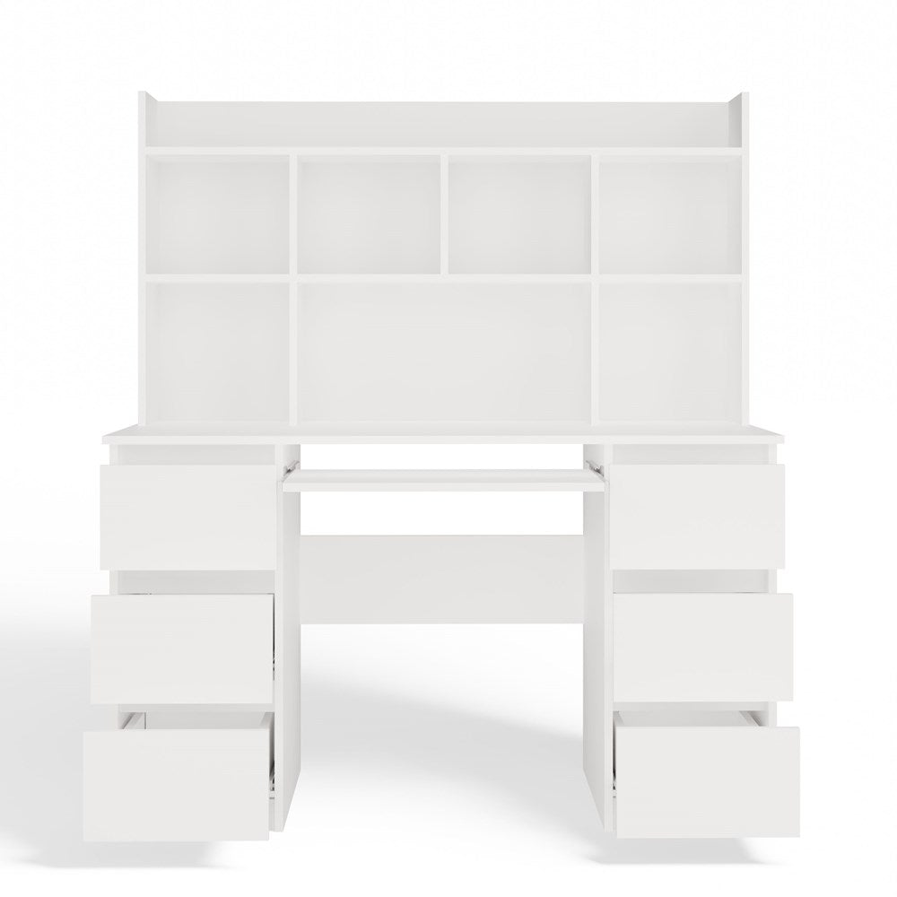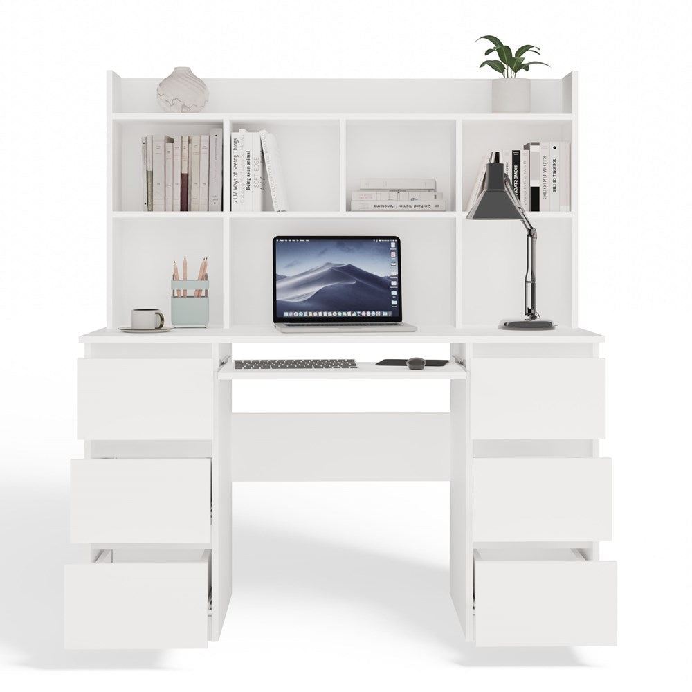 Kuba Bureau met Bovenstuk – Functionele Werkset met 6 Lades en 5 Planken | Wit | 130x146x51 cm
