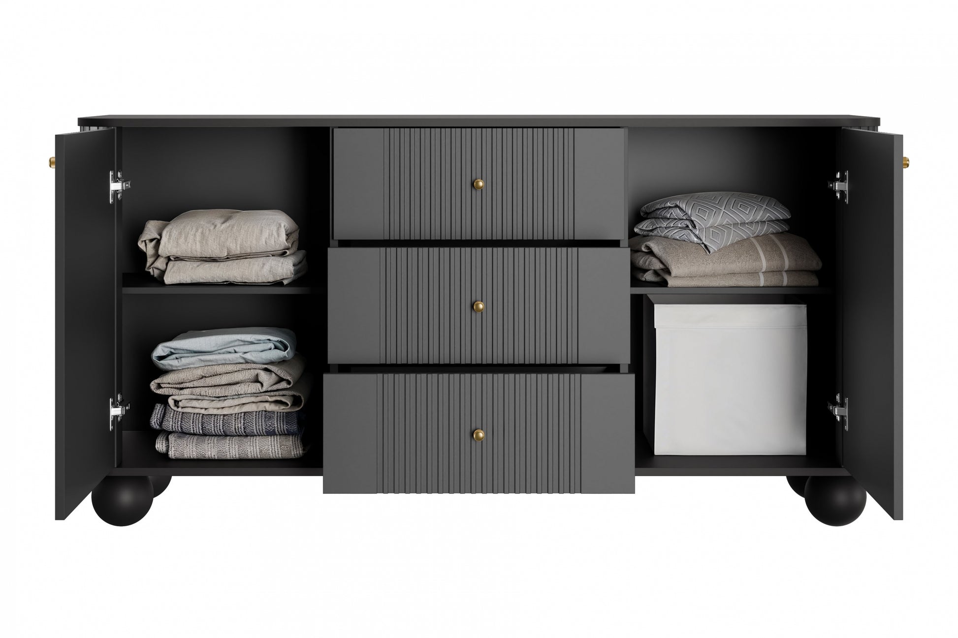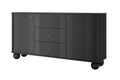 Vesper Ladekast 160 cm – Zwart met Gouden Handgrepen en Bolpoten