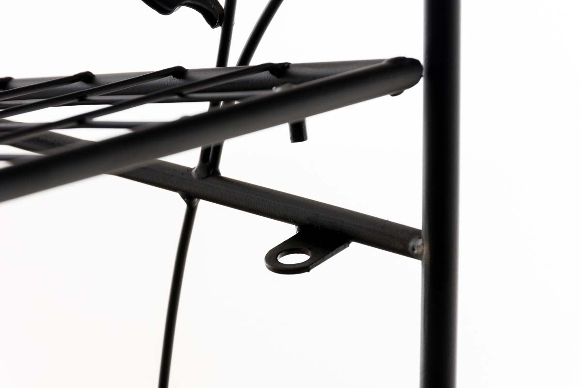 Denna modell är inte tillverkad av tunn metallplåt, utan av ett mycket robust, tjockt metallrör. Kvaliteten är utmärkt. Den består av få delar, vilket gör den mycket stabil. En beläggning gör detta ståställ exceptionellt högkvalitativt och säkerställer en längre livslängd. Detta noggrant designade ställ i lantlig stil är mycket vackert och har ett antikt utseende. Ståstället kan fällas ihop om så önskas. Denna helt nya produkt är enkel att montera och levereras i sin originalförpackning.