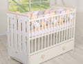 Denna vackra och otroligt mjuka vävda spjälskydd är tillverkad av 100 % bomull. Tack vare de medföljande bomullsrosetterna kan du enkelt fästa skyddet på spjälsängsstängerna. Skyddet skyddar ditt barns händer och fötter från att klämmas mellan stängerna och förhindrar att huvud och kropp stöter mot spjälsängens vägg.