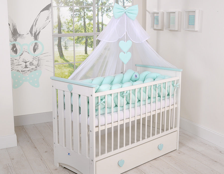 Spjälsängsskydd XXL - flätad sängkant - 100% bomull - extra mjuk - mintgrön